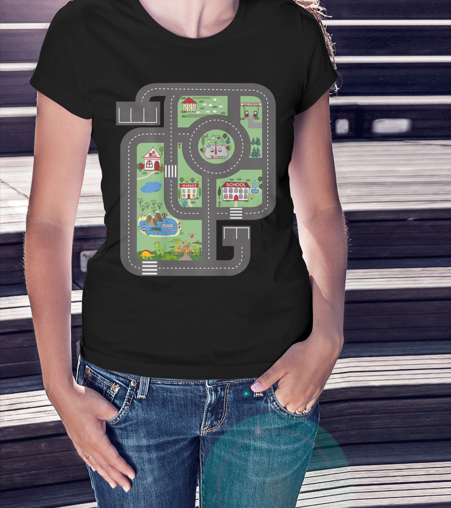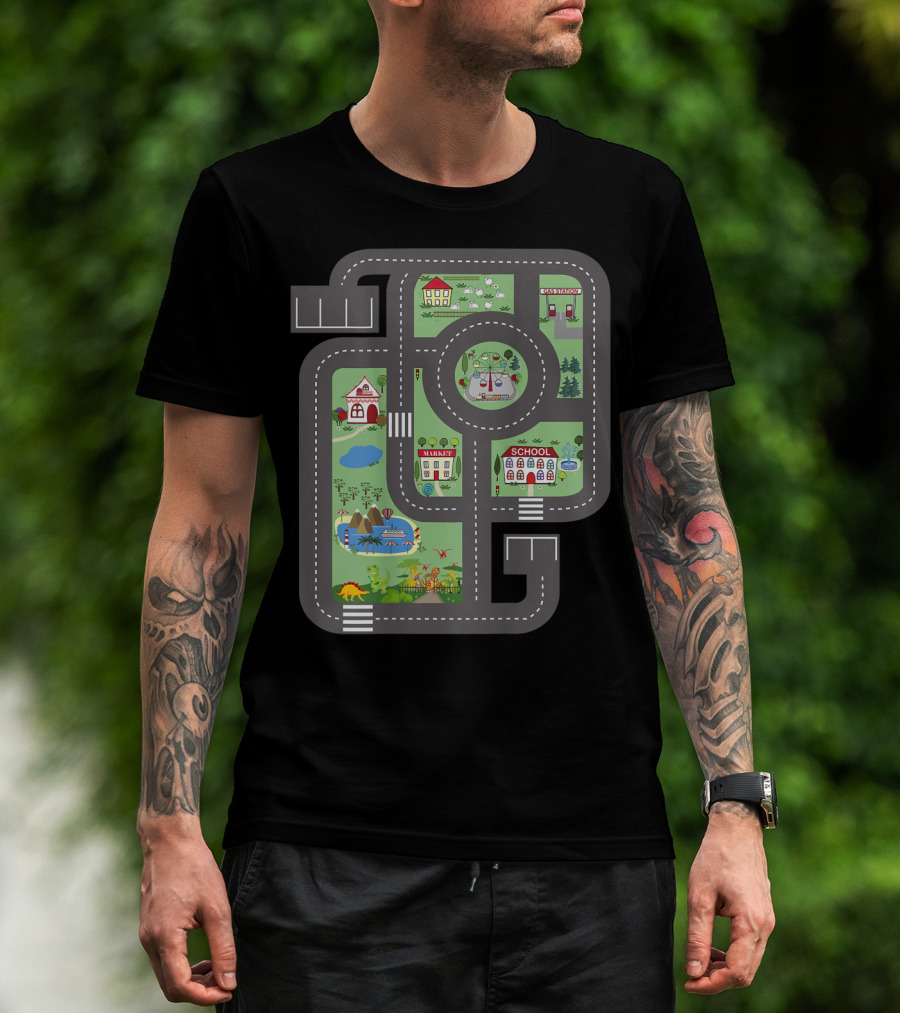 Cool Play Mat Race Car Track On Dad With Dinosaurs School Farm Playground T-Shirt