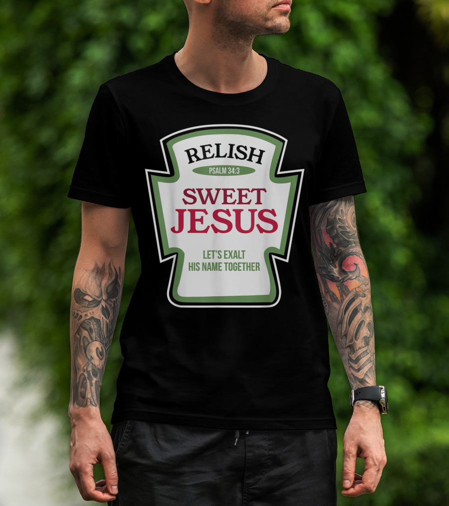 Christian Sweet Jesus Relish Psalm 34:3 Let's Exalt His Name Together T-Shirt