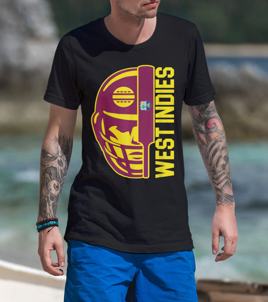 West Indies Cricket Fan Helmet Emblem With Ball And Bat T-Shirt