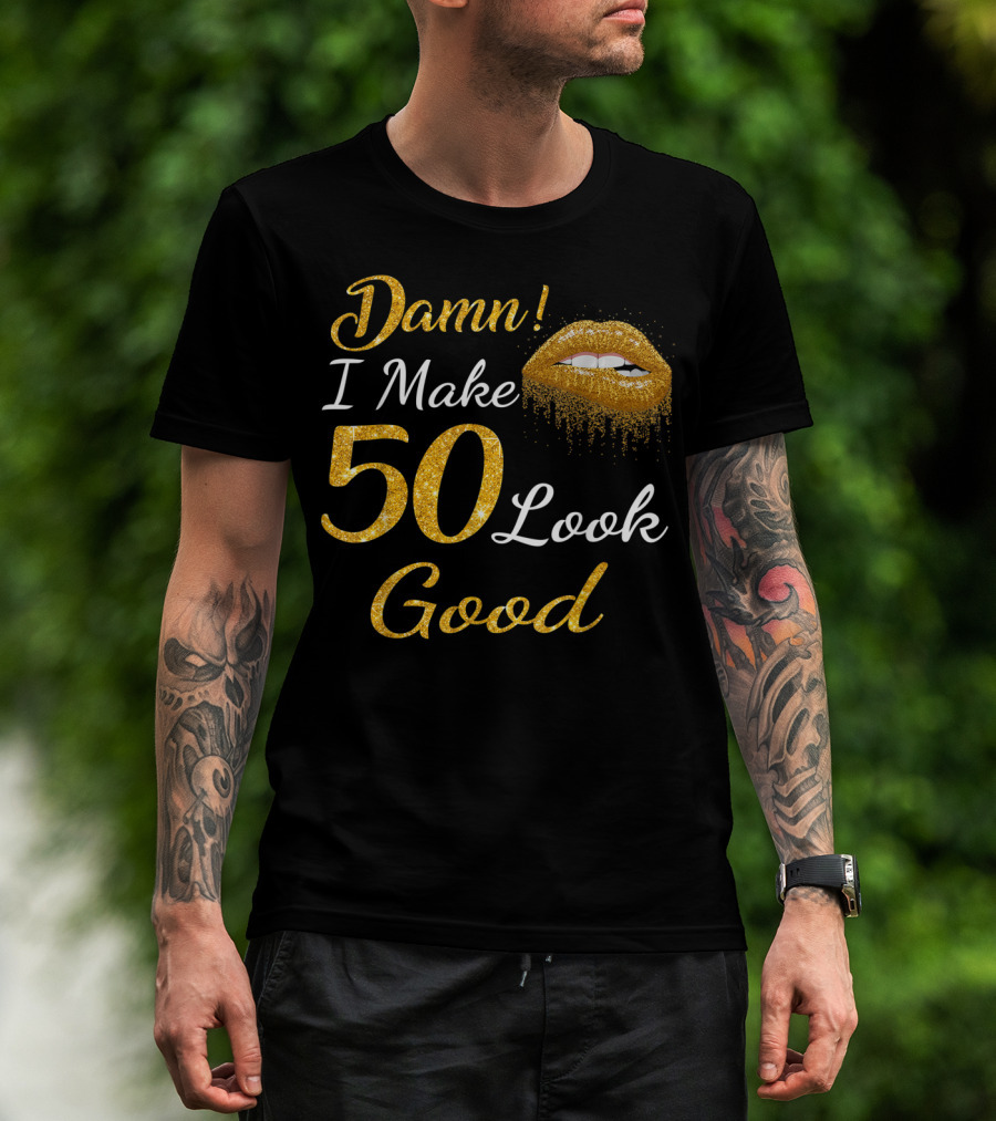 Damn I Make 50 Look Good Gold Lips Birthday T-Shirt