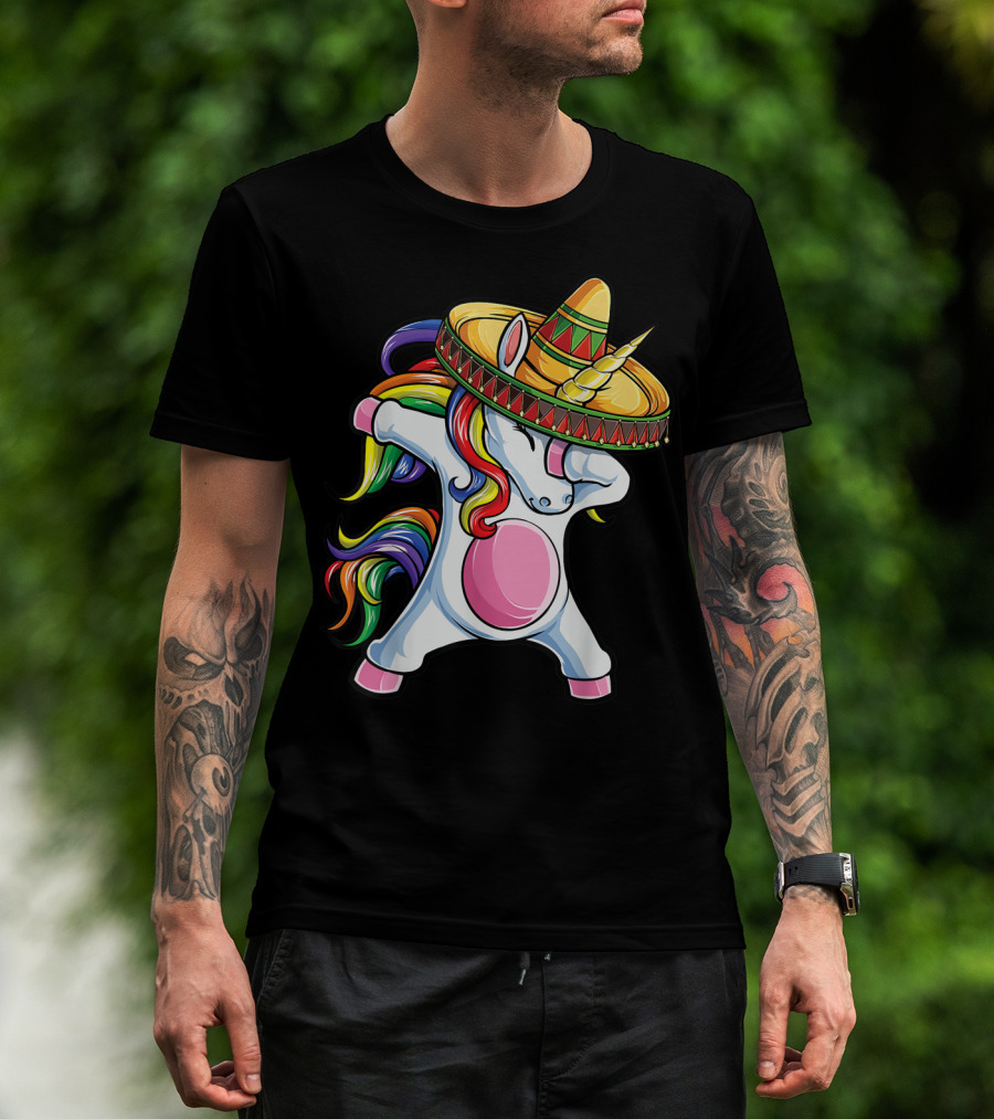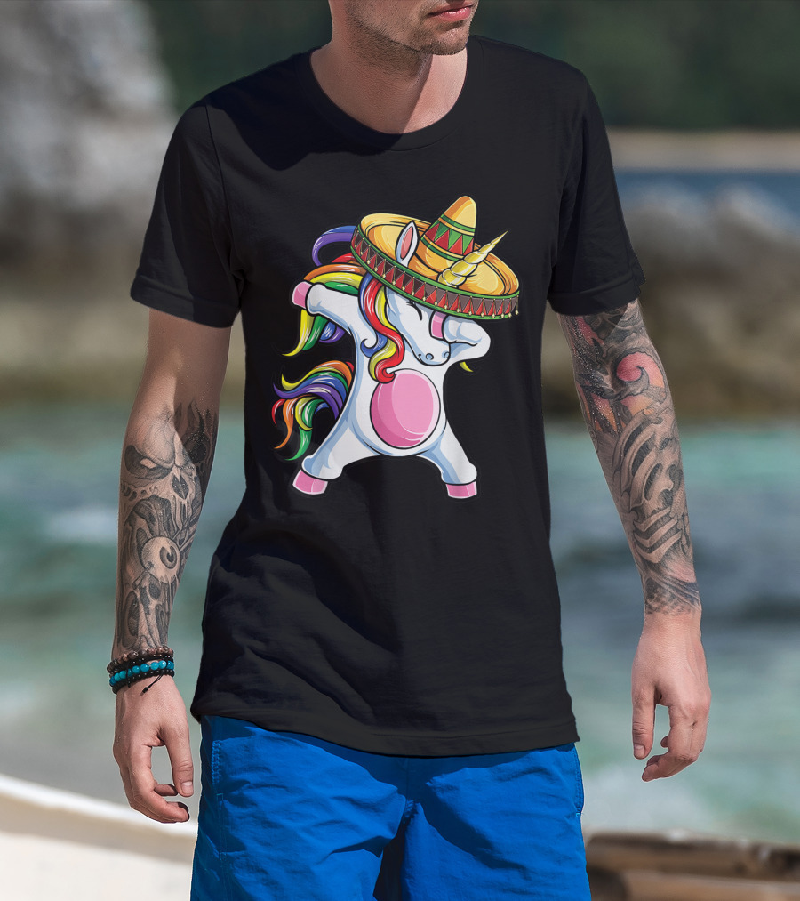 Dabbing Unicorn With Sombrero Cinco De Mayo T-Shirt