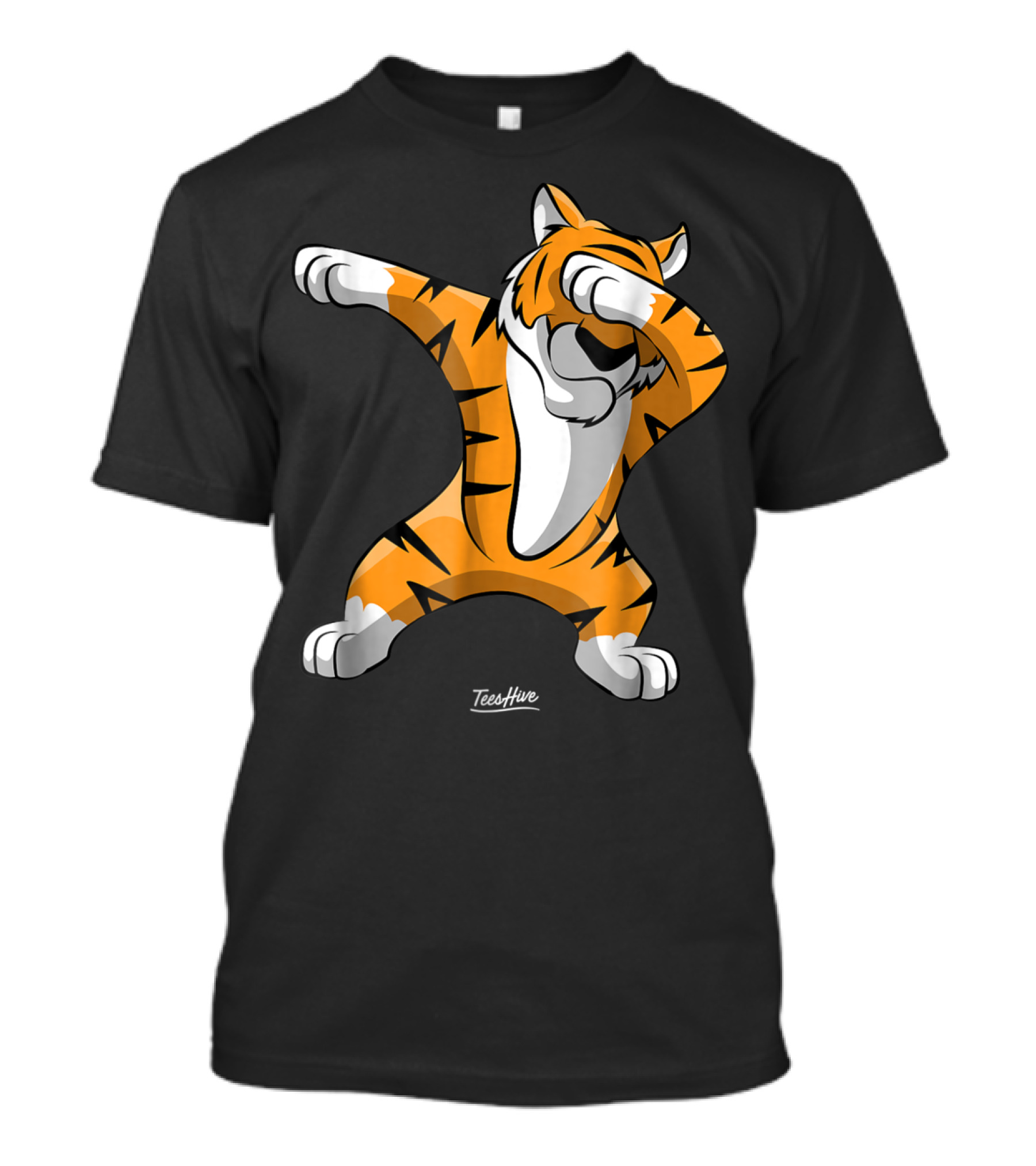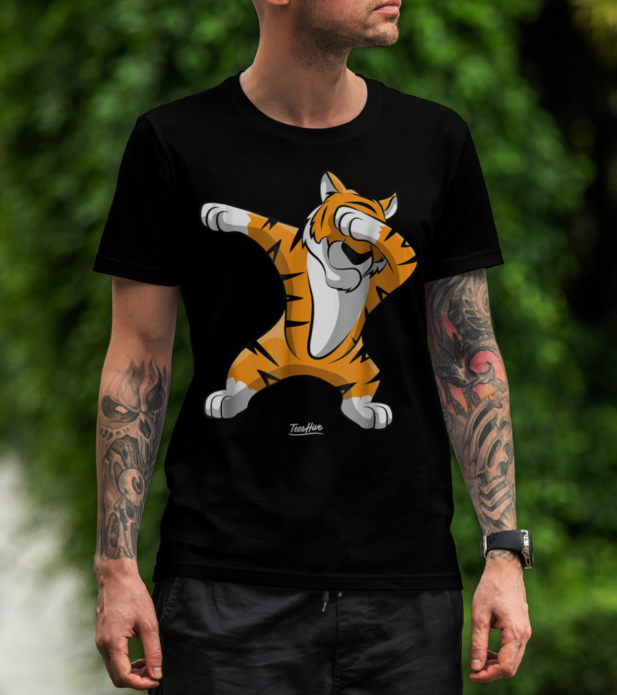 The Dabbing Tiger Dab Safari Funny Animal Tiger TeesHive T-shirt is designed for everyday wear and a consistent fit. Fabric is pre-shrunk ring-spun cotton with durable stitching. See the size chart below for exact measurements.