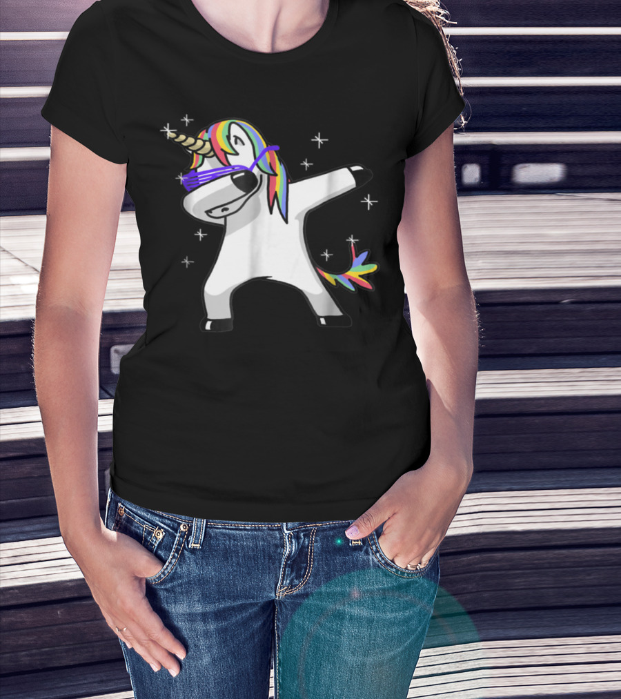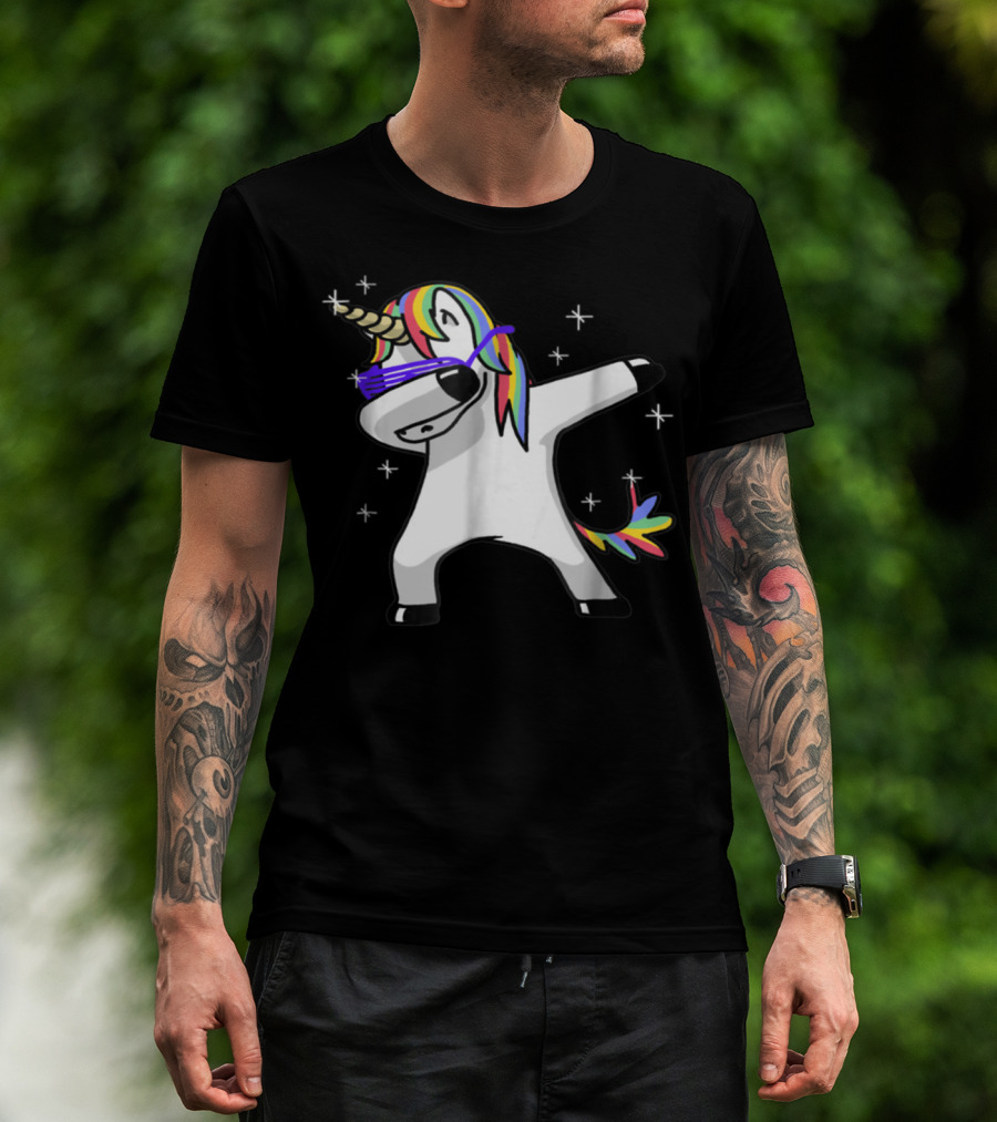 Rainbow Dabbing Unicorn With Sunglasses And Stars T-Shirt
