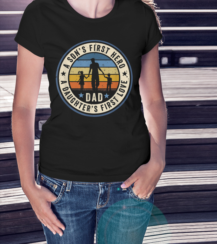 Dad A Son's First Hero A Daughter's First Love Vintage Silhouette Retro Circle T-Shirt