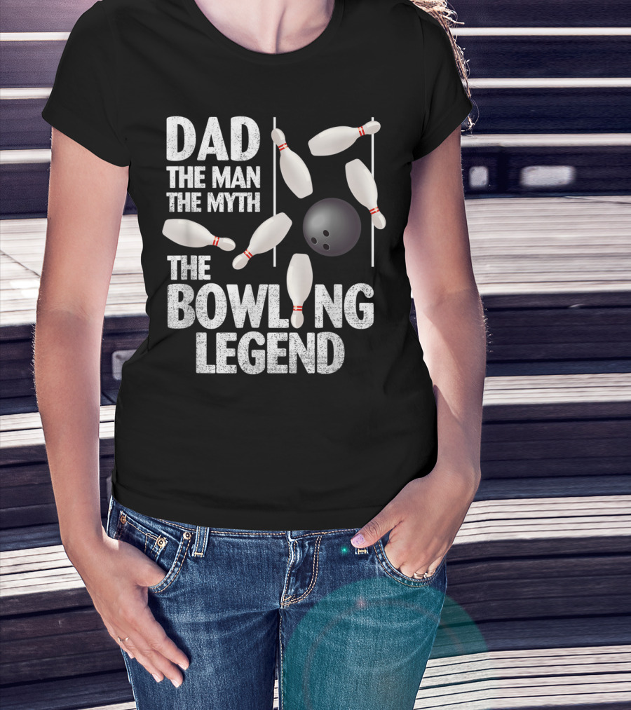 Dad The Man The Myth The Bowling Legend Pins Ball Display T-Shirt
