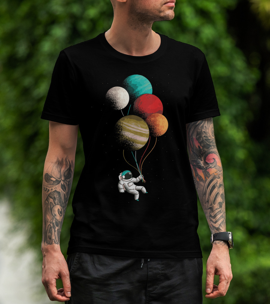 Cute Astronaut Floating With Planet Balloons In Space T-Shirt
