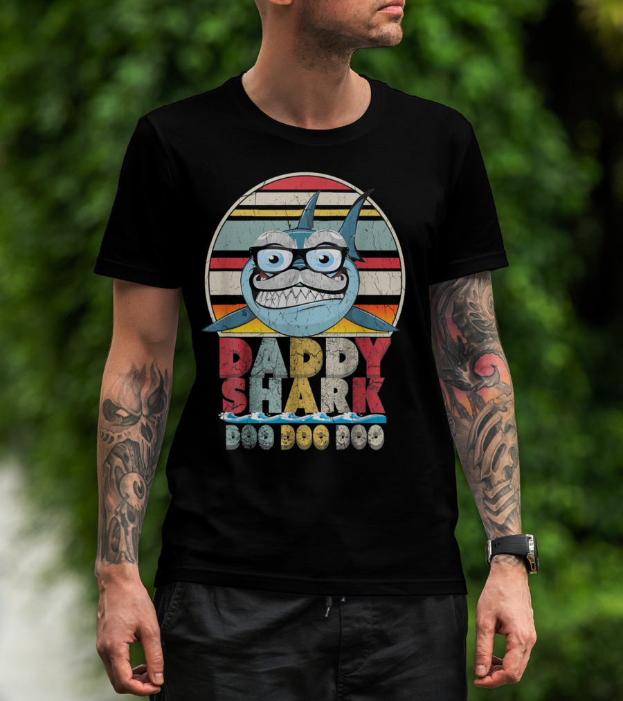 DADDY SHARK DOO DOO DOO Vintage Cute Shark With Glasses T-Shirt