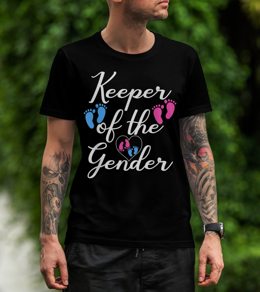 The Keeper of the Gender Baby Reveal Party Footprint T-shirt is designed for everyday wear and a consistent fit. Fabric is pre-shrunk ring-spun cotton with durable stitching. See the size chart below for exact measurements.