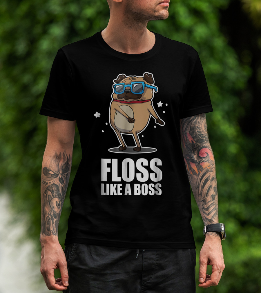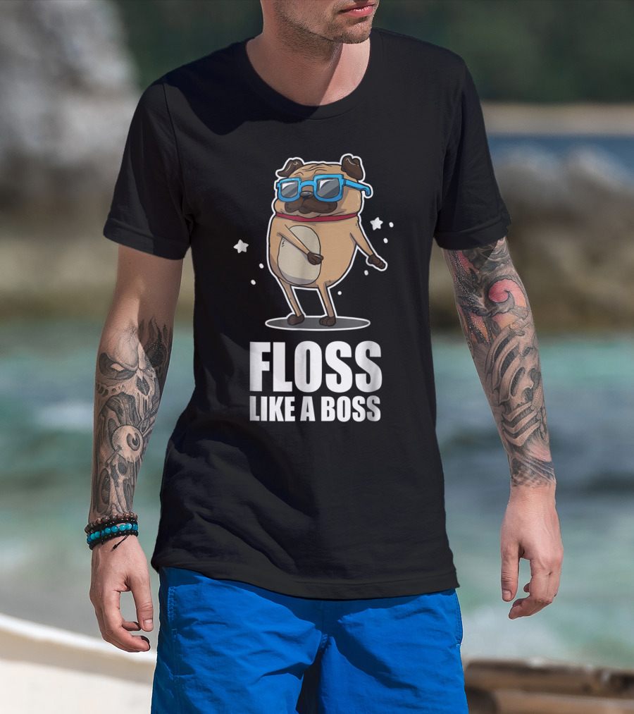 Floss Like A Boss Pug In Blue Sunglasses Floss Dance T-Shirt