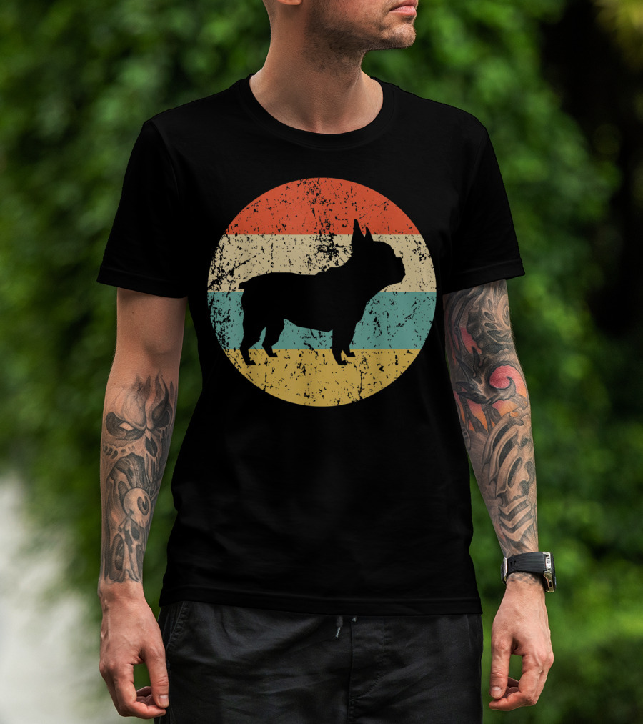Retro French Bulldog Silhouette Vintage Circle T-Shirt