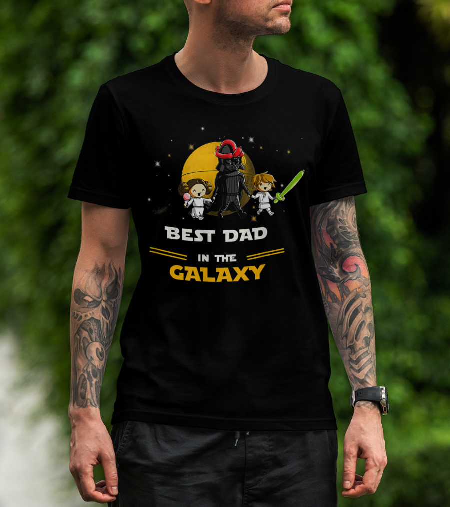 Father Daughter And Son Best Dad In The Galaxy Star Wars Parody With Dark Helmet And Green Lightsaber T-Shirt