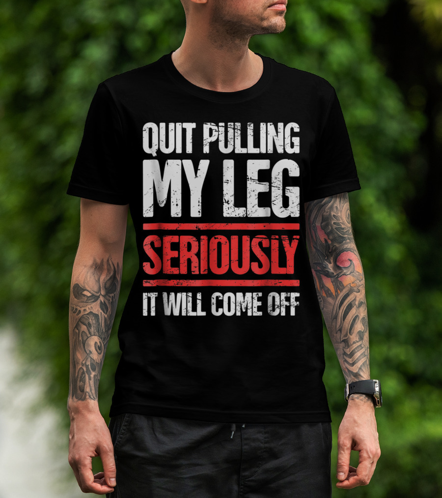 QUIT PULLING MY LEG SERIOUSLY IT WILL COME OFF Distressed Funny Present For Leg Amputee T-Shirt