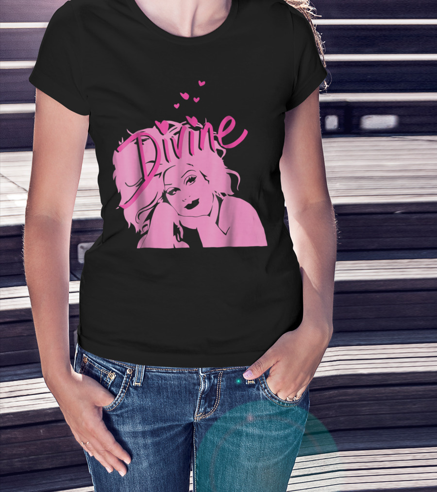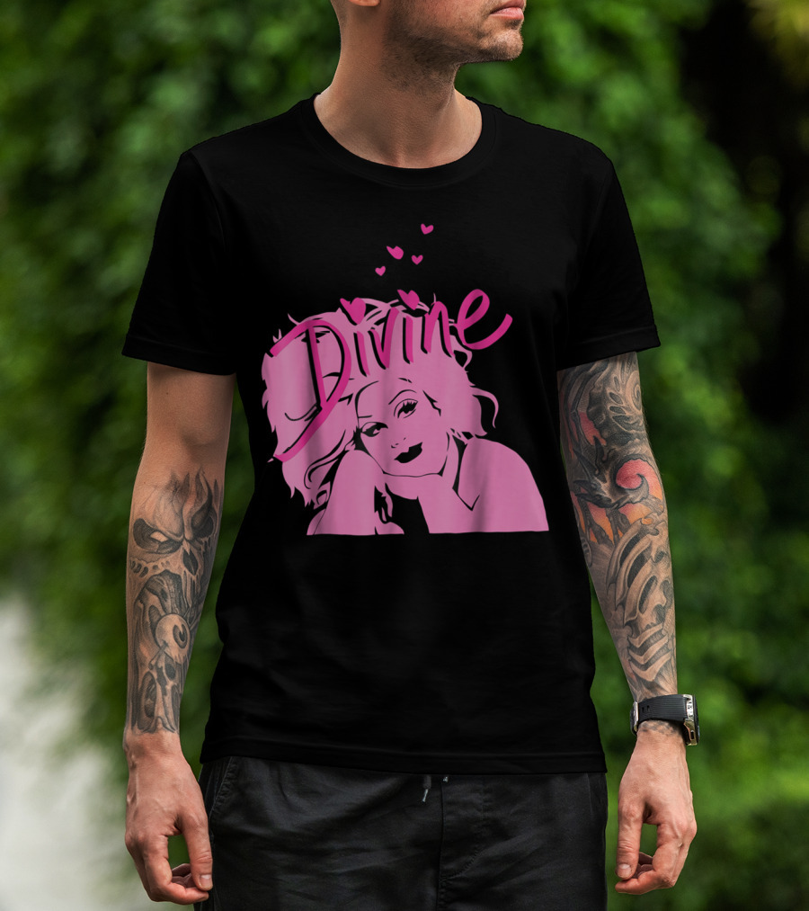 DIVINE John Waters Female Trouble Pink Portrait With Hearts T-Shirt
