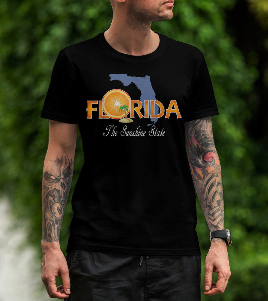 Florida The Sunshine State Orange And Palm Map T-Shirt
