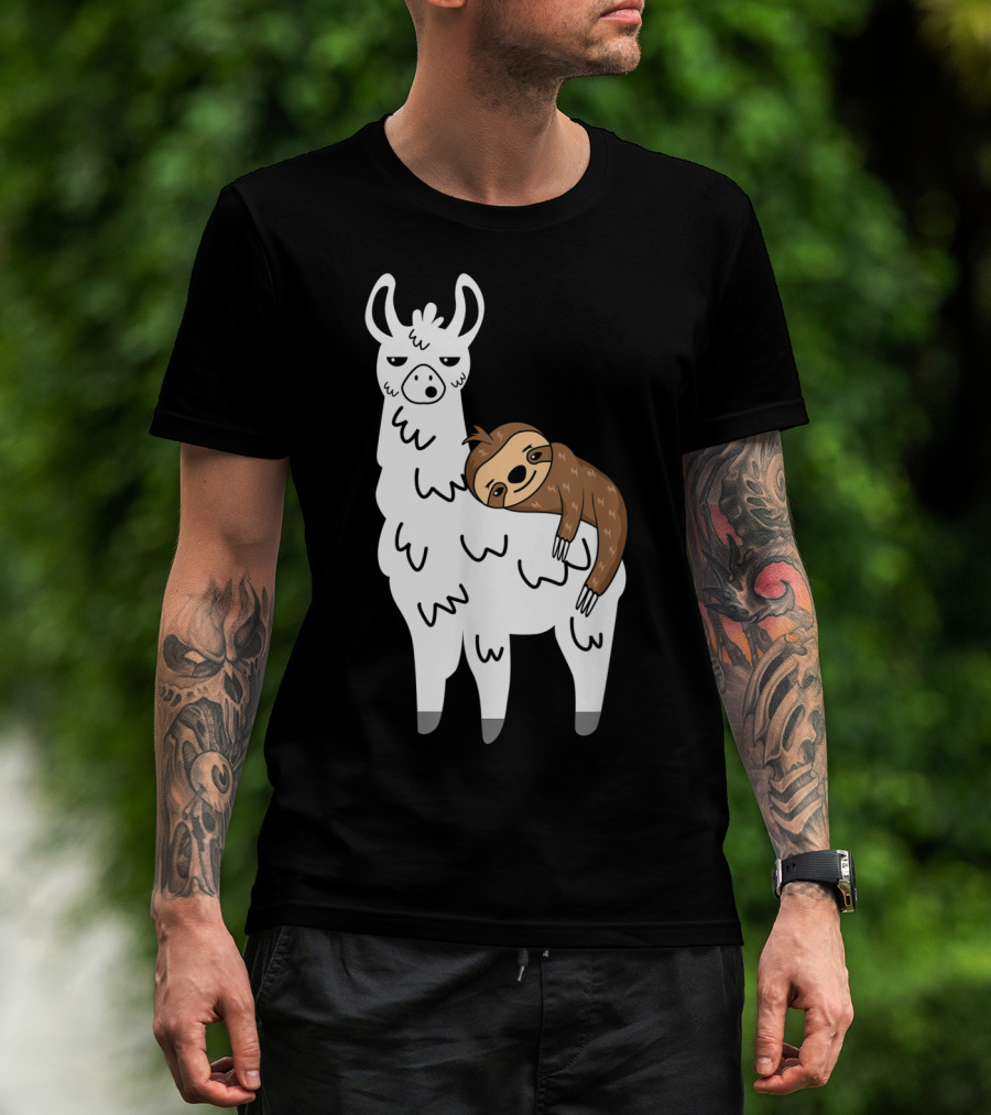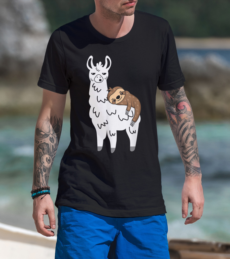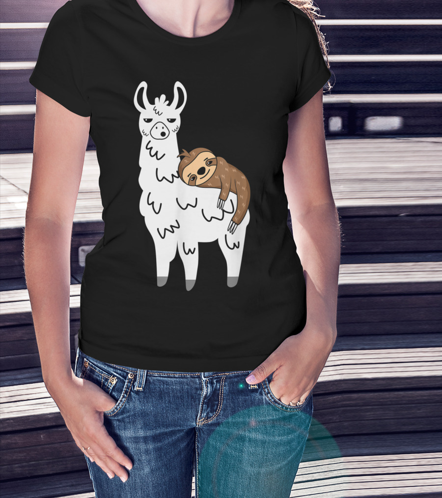 Funny Fluffy Sloth Hugging A Llama T-Shirt