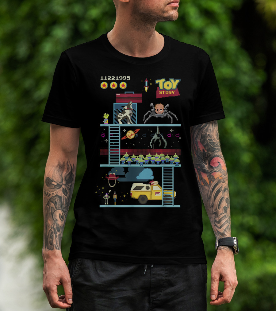 Toy Story 8 Bit Video Game Scene With Retro Pixel Art Adventure T-Shirt