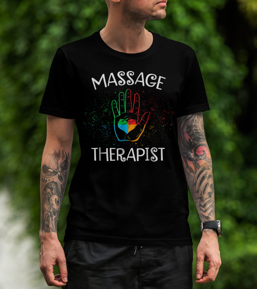 Funny Muscle Whisperer Physical Therapist Rainbow Handprint Massage T-Shirt