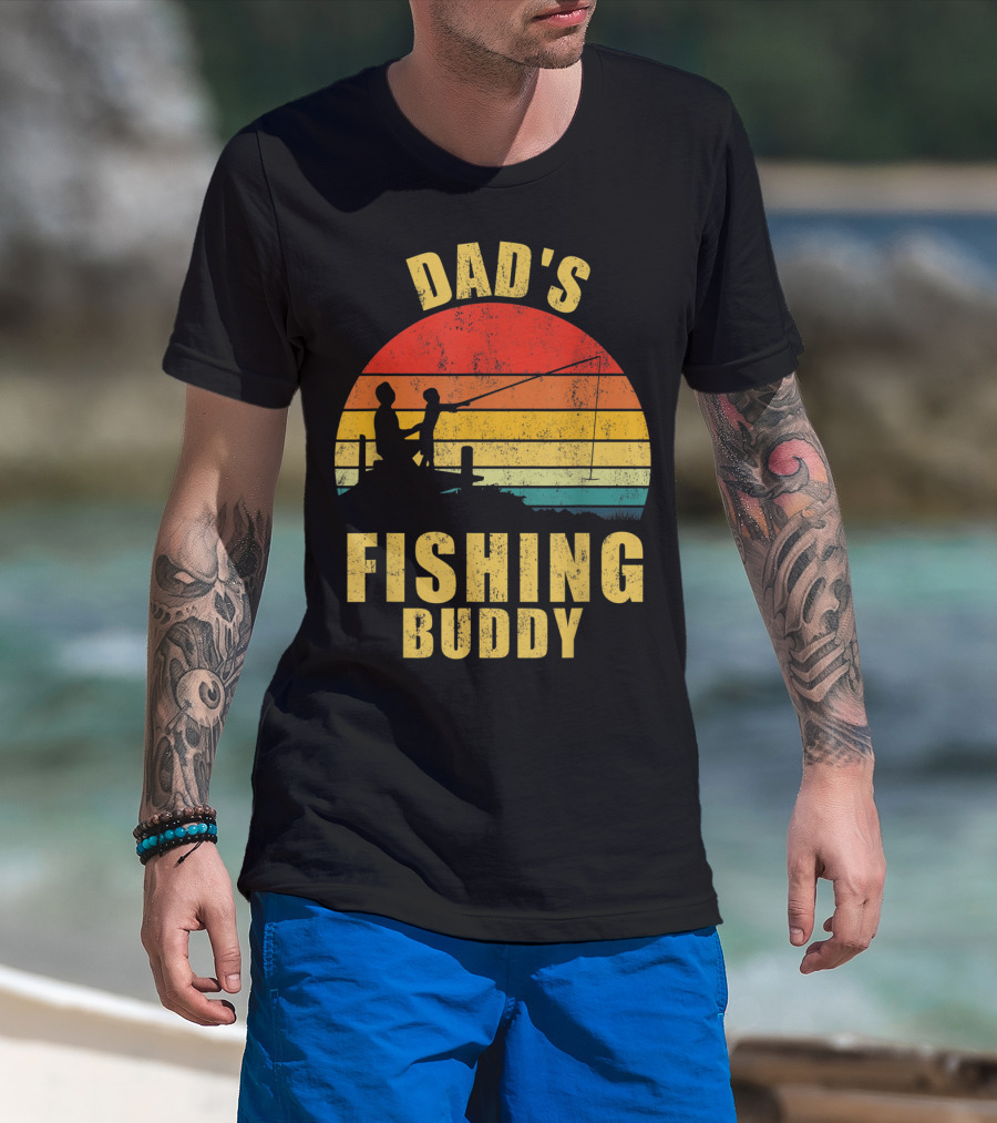 Dad's Fishing Buddy Sunset Retro T-Shirt