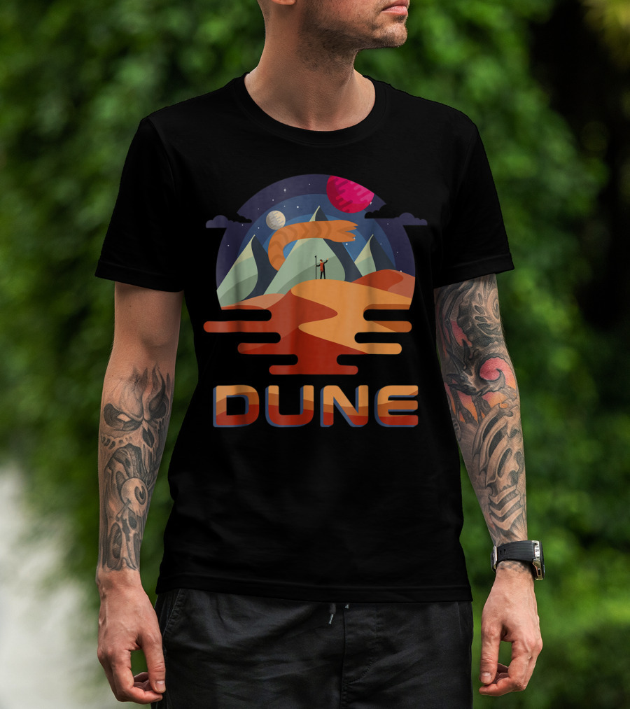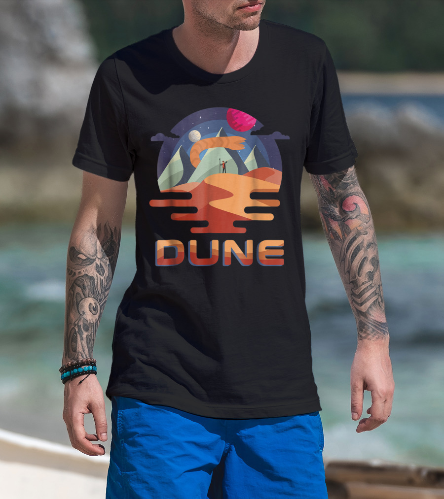 The Dune Science Fiction Sci Fi Landscape Arrakis Planets Moon Desert Sand T-shirt is designed for everyday wear and a consistent fit. Fabric is pre-shrunk ring-spun cotton with durable stitching. See the size chart below for exact measurements.