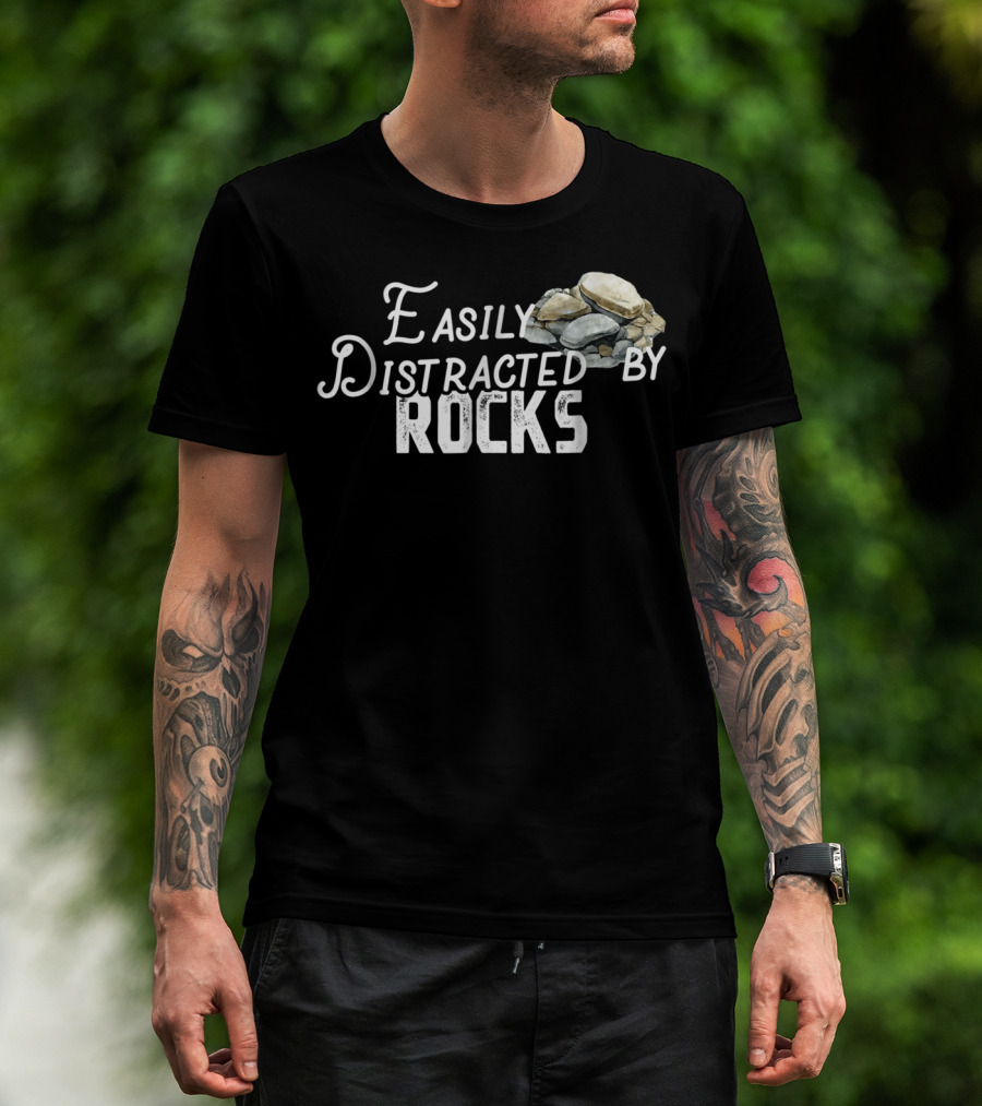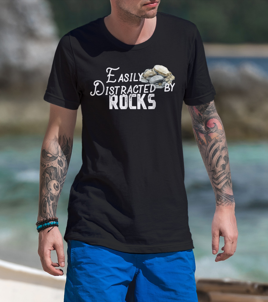 Easily Distracted By Rocks Cute Rock Lover Avec Piles De Pierres T-Shirt