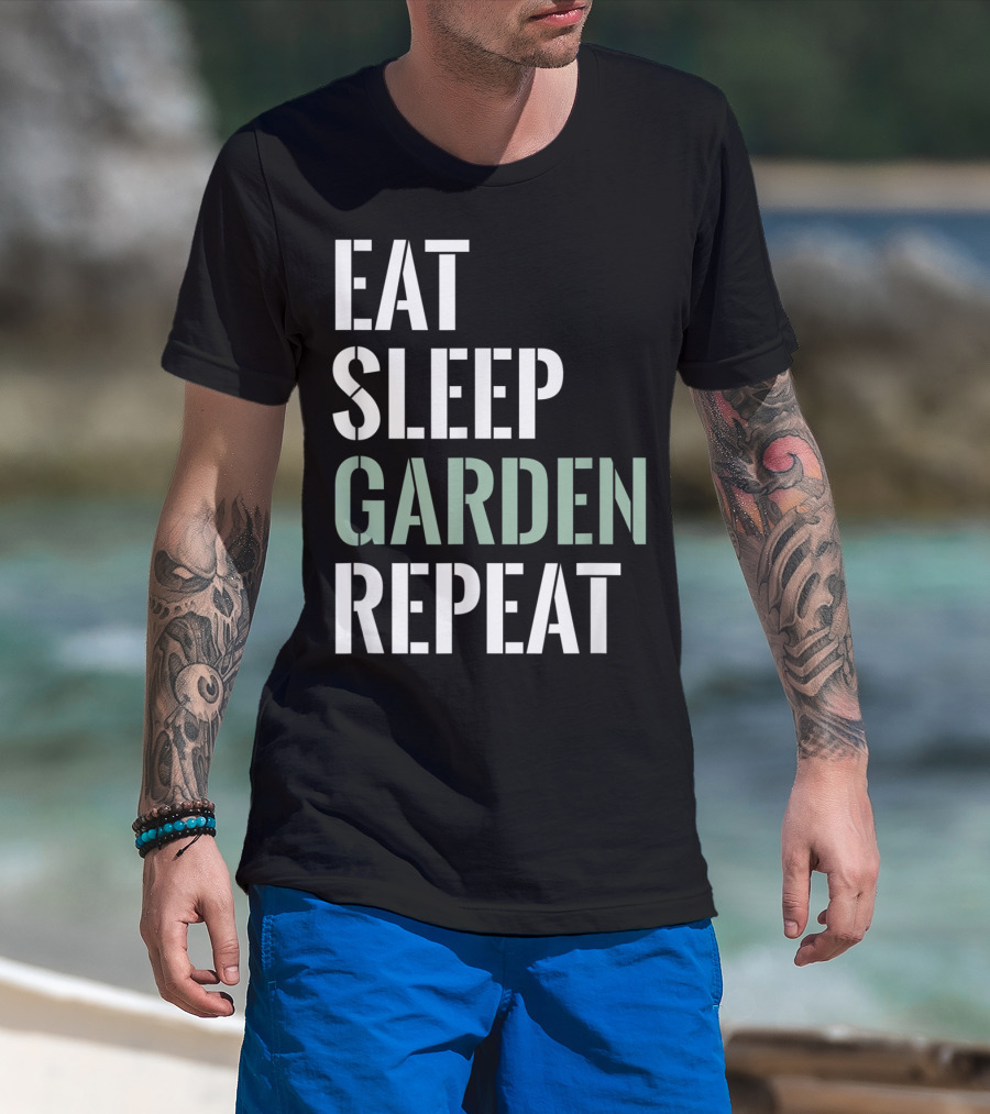 Eat Sleep Garden Repeat Funny Gardening Yard Gar T-Shirt