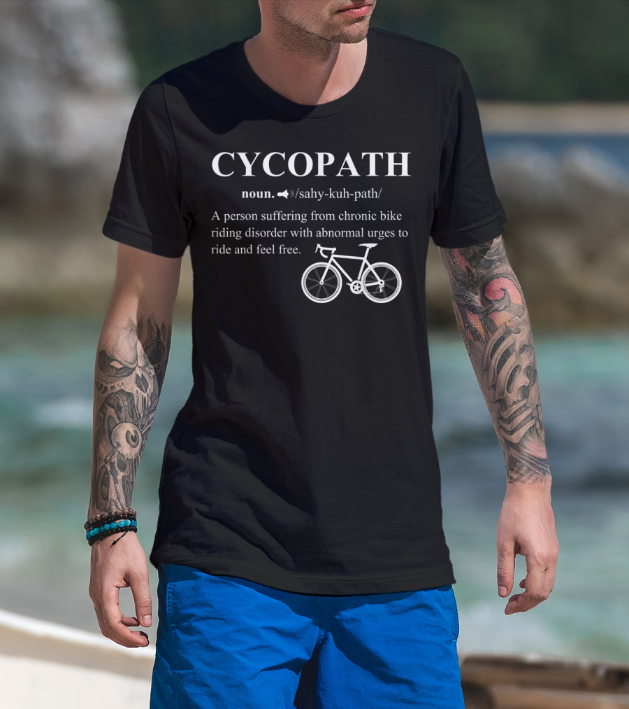 The Cycopath Noun Definition Bicycle Riding Disorder Abnormal Urges to Ride T-shirt is designed for everyday wear and a consistent fit. Fabric is pre-shrunk ring-spun cotton with durable stitching. See the size chart below for exact measurements.