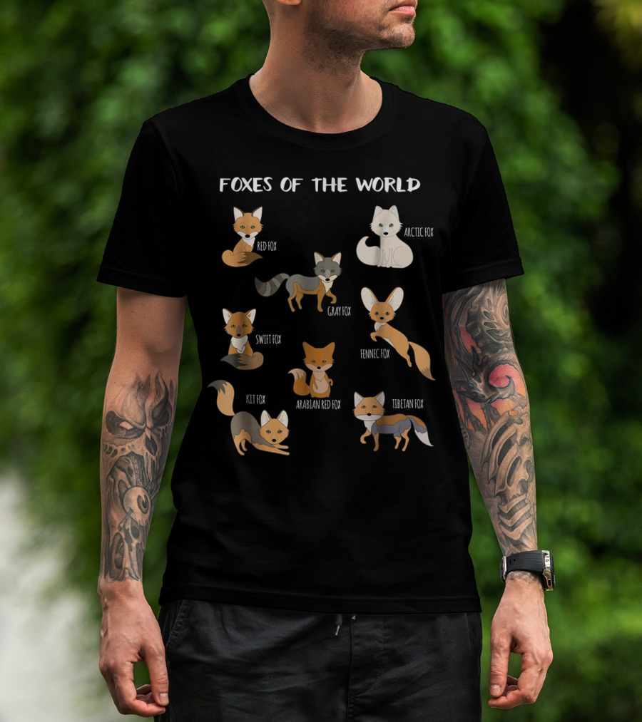 Foxes Of The World Arctic Gray Red Swift Kit Fennec Tibetan Arabian Fox Animals Educational T-Shirt