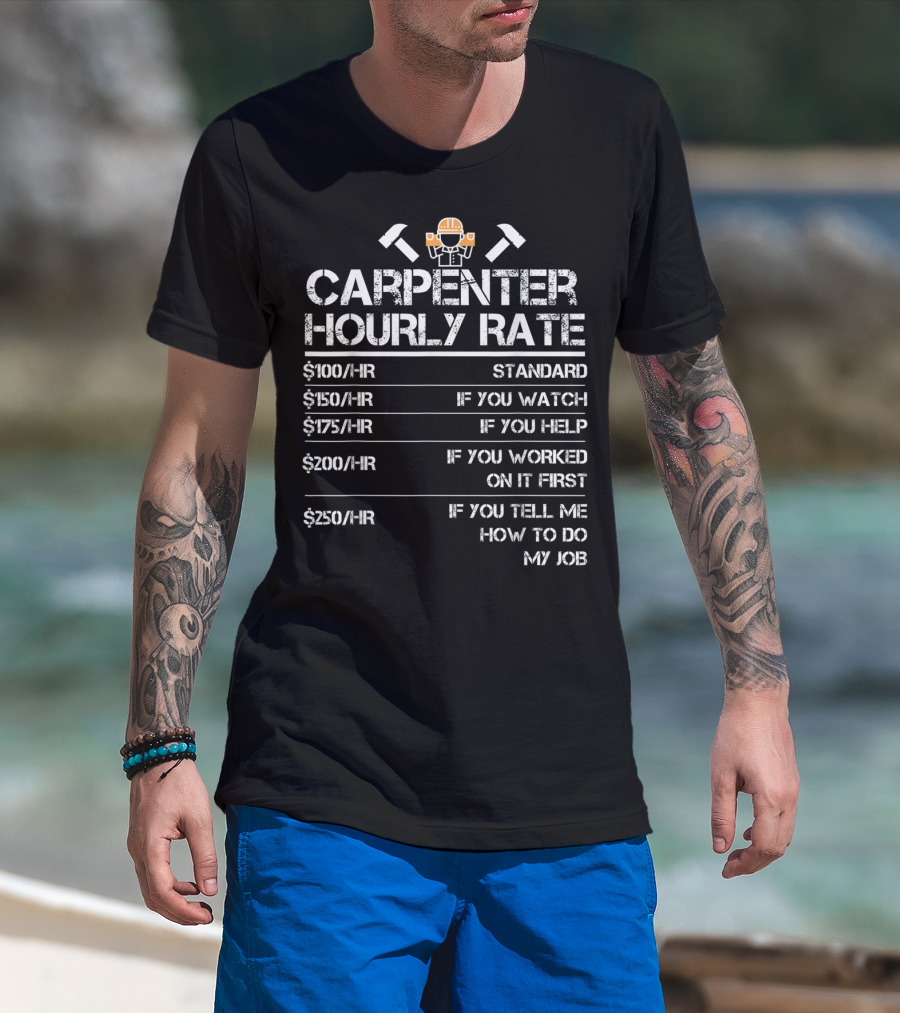 Funny Carpenter Hourly Rate Wood Working Carpenter Hourly Rate Standard If You Watch If You Help If You Worked On It First If You Tell Me How To Do My Job T-Shirt