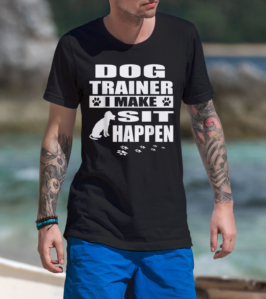 Dog Trainer I Make Sit Happen Funny Dog Commands Obedience T-Shirt