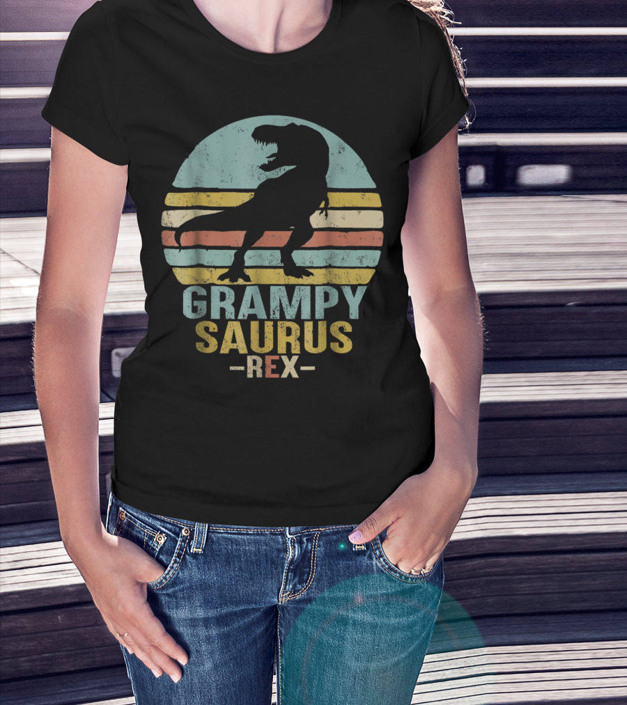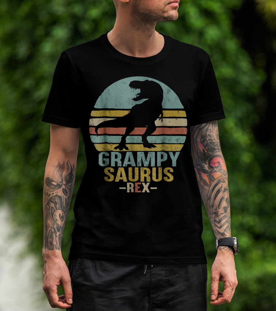 Grampysaurus Rex Funny Dinosaur Retro Sunset Stripes Grampy Sau T-Shirt