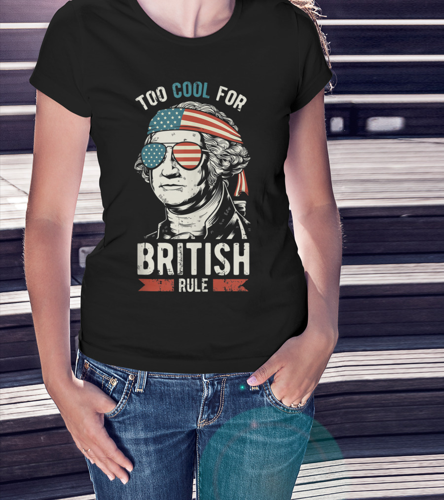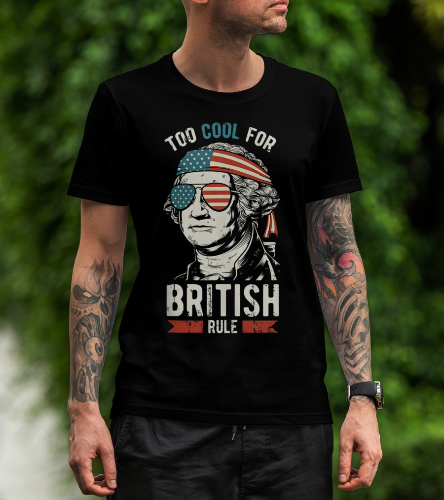 Too Cool For British Rule American Flag Sunglasses Bandana George Washington T-Shirt
