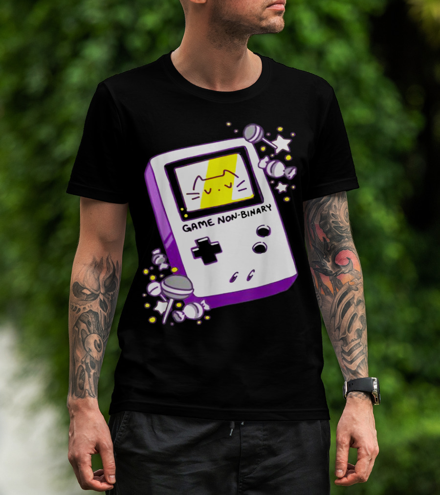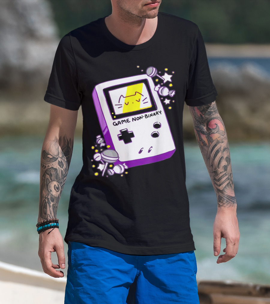 GAME NON BINARY Handheld Console With Cat And Stars T-Shirt