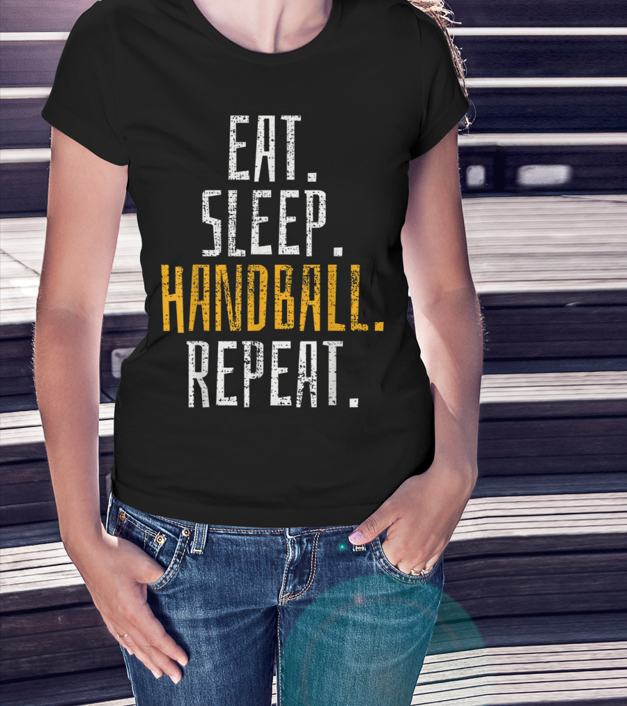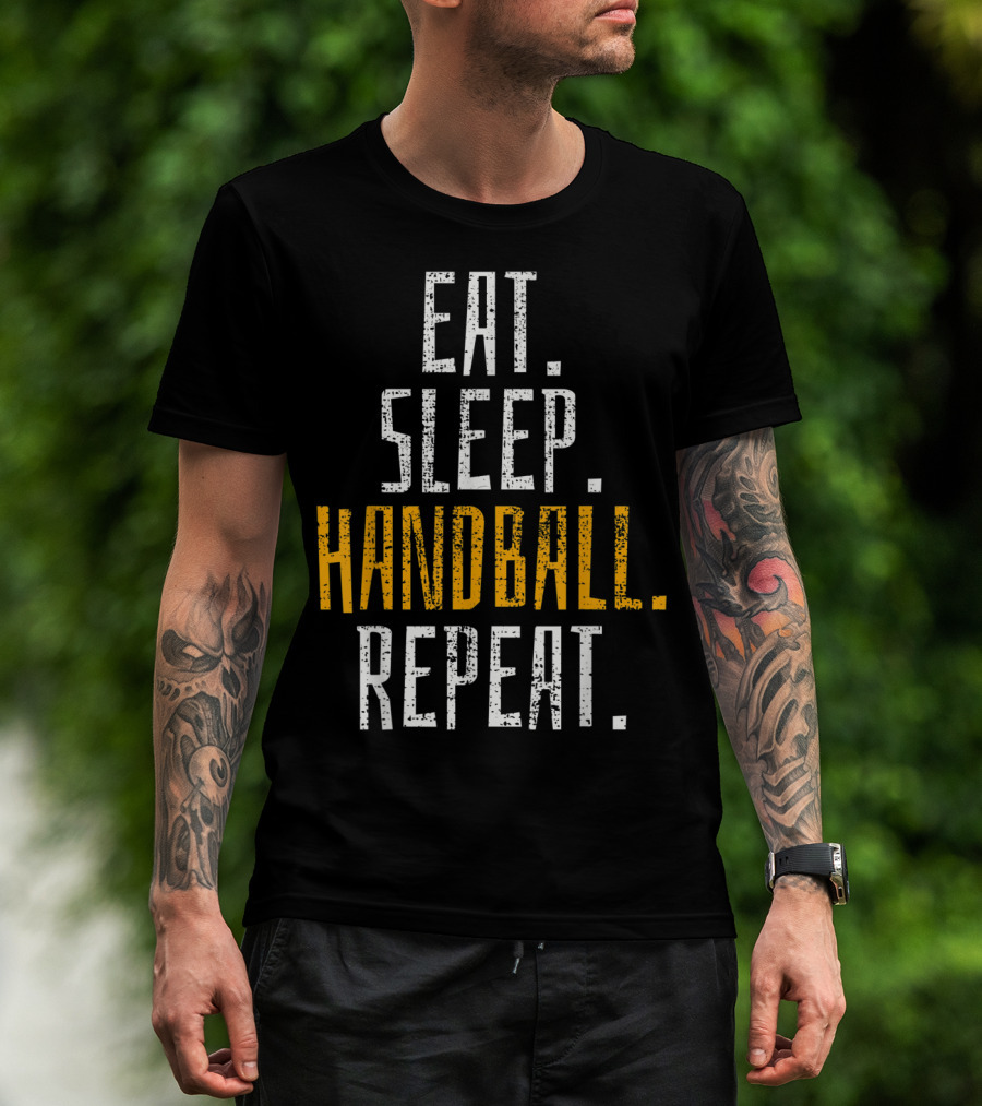The Eat Sleep Handball Repeat T-shirt is designed for everyday wear and a consistent fit. Fabric is pre-shrunk ring-spun cotton with durable stitching. See the size chart below for exact measurements.