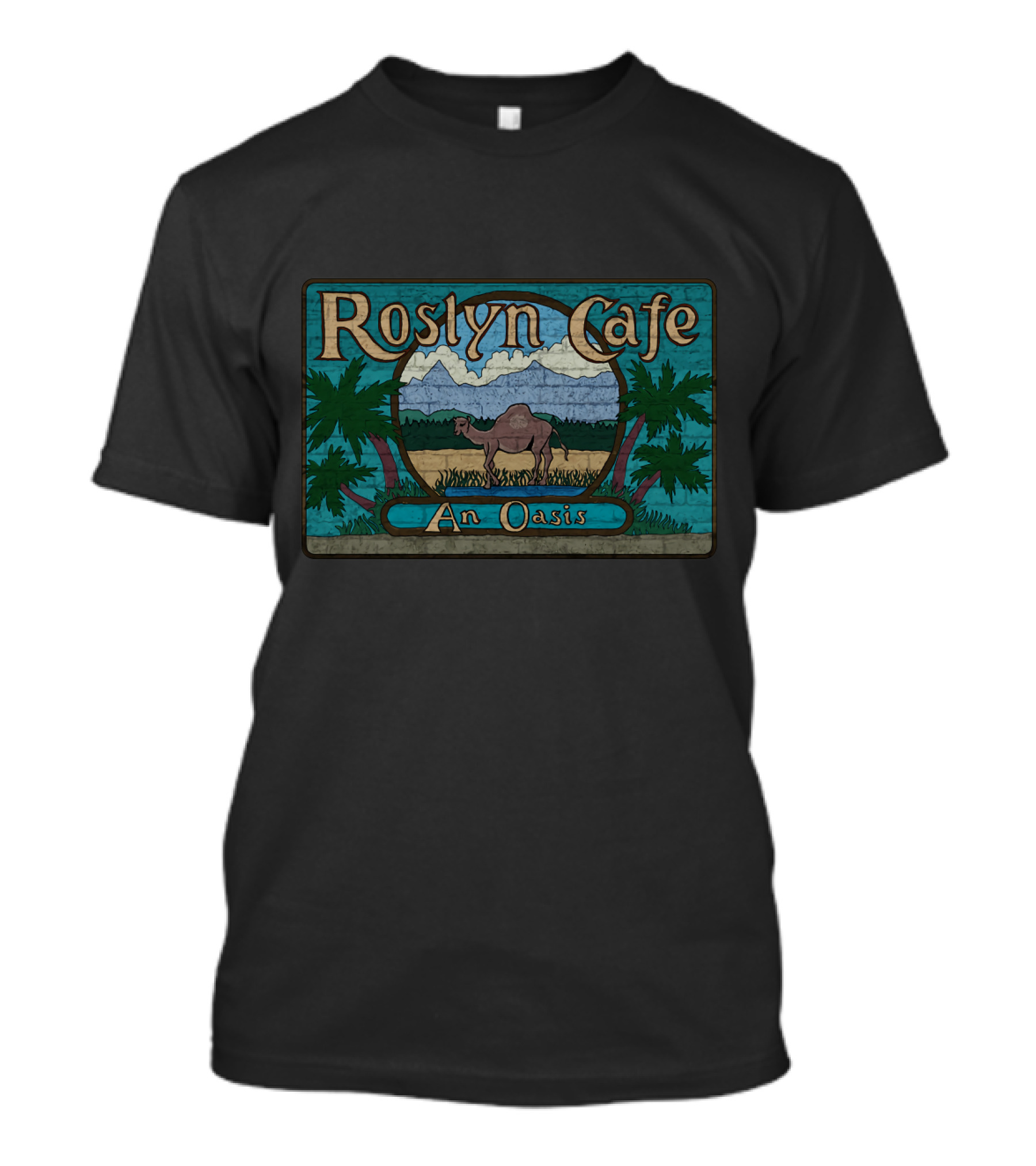 Roslyn Cafe An Oasis Camel Desert Scene Palms T-Shirt