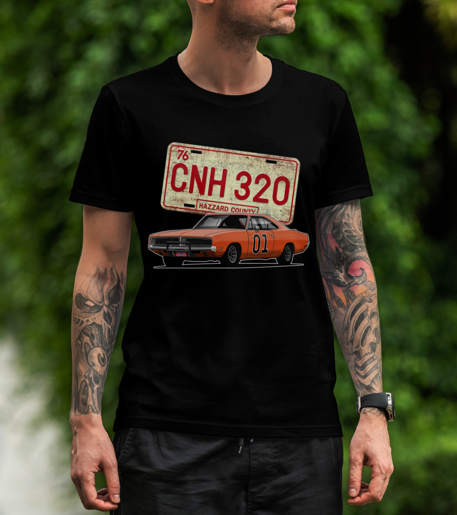 The Duke of Hazzard '76 CNH 320 Hazzard County 01 Car License Plate T-shirt is designed for everyday wear and a consistent fit. Fabric is pre-shrunk ring-spun cotton with durable stitching. See the size chart below for exact measurements.