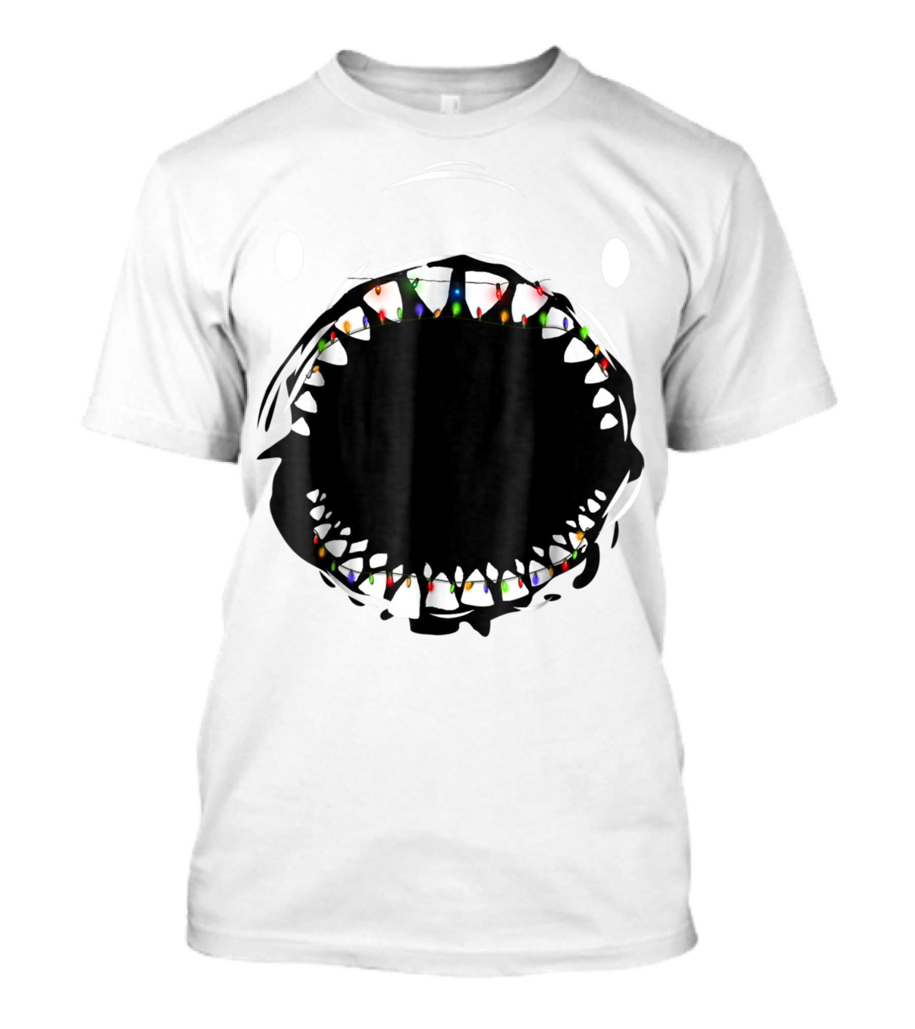 The Shark Face With Christmas Lights Xmas Shark T-shirt is designed for everyday wear and a consistent fit. Fabric is pre-shrunk ring-spun cotton with durable stitching. See the size chart below for exact measurements.