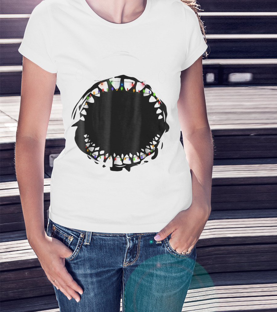 Shark Face With Christmas Lights Xmas Shark T-Shirt