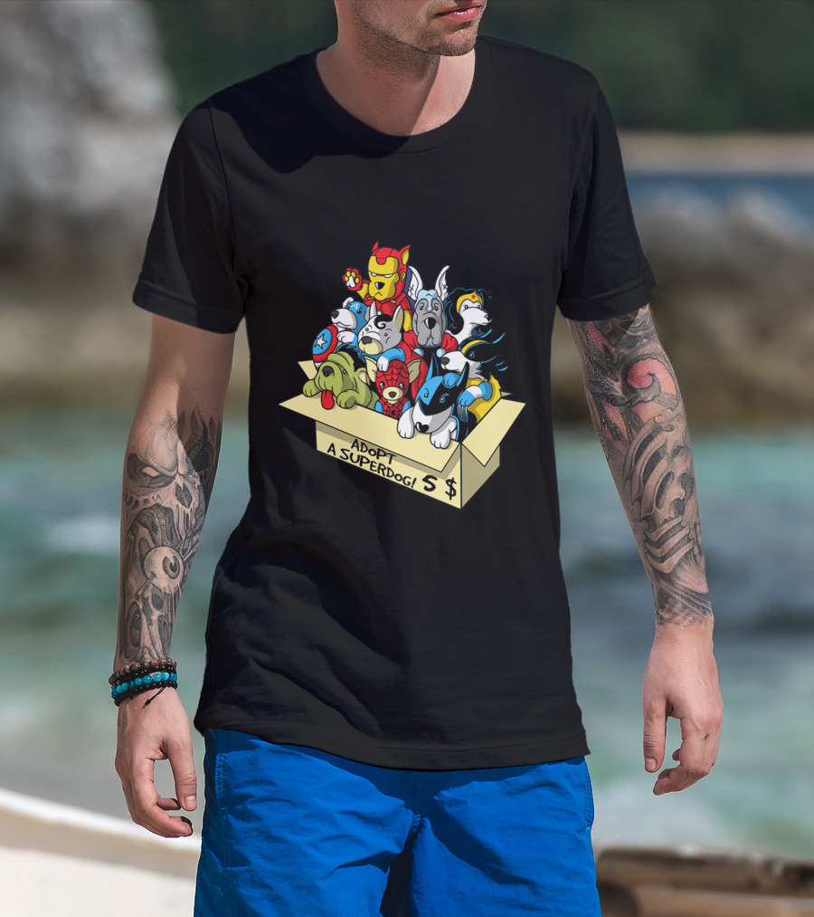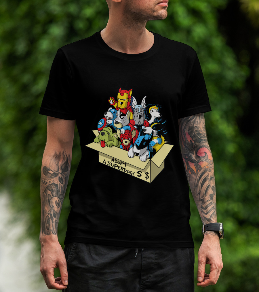 Adopt A Superdog Hero Box With $5 Avengers And Justice League Canine Cosplay T-Shirt