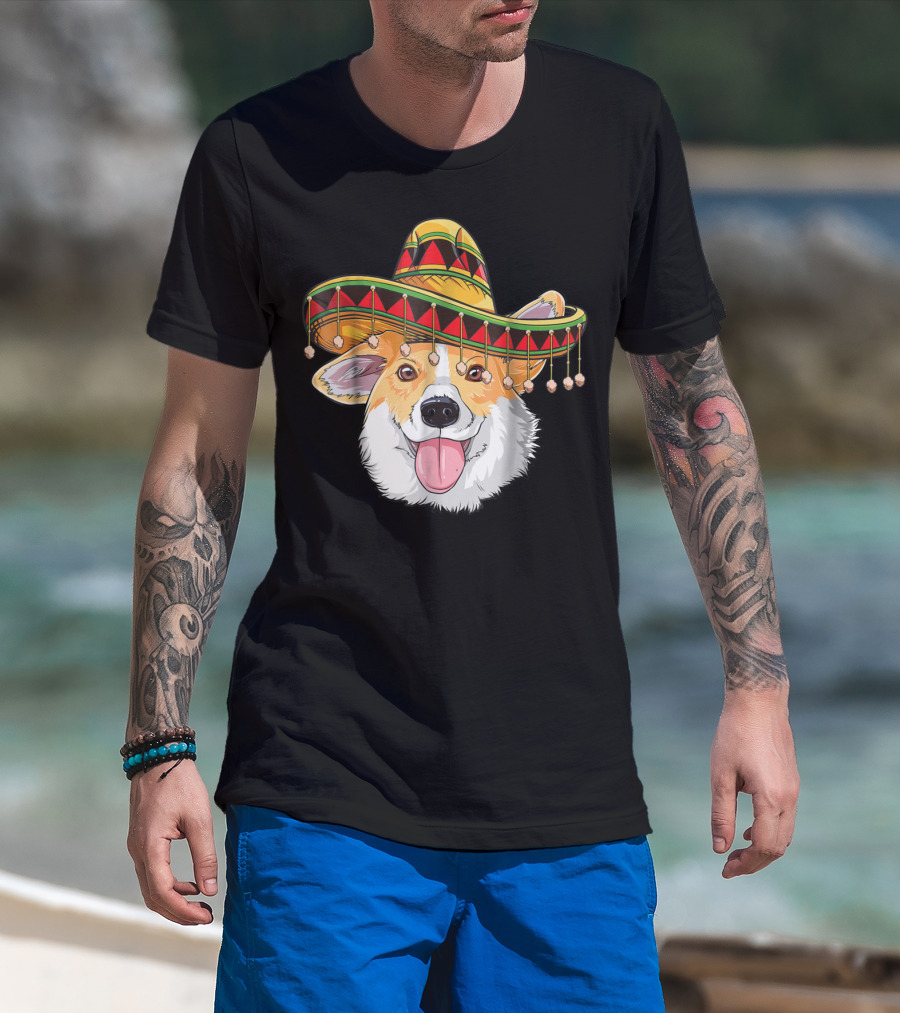 Cinco De Mayo Corgi Kids Boy Girl Sombrero Hat T-Shirt