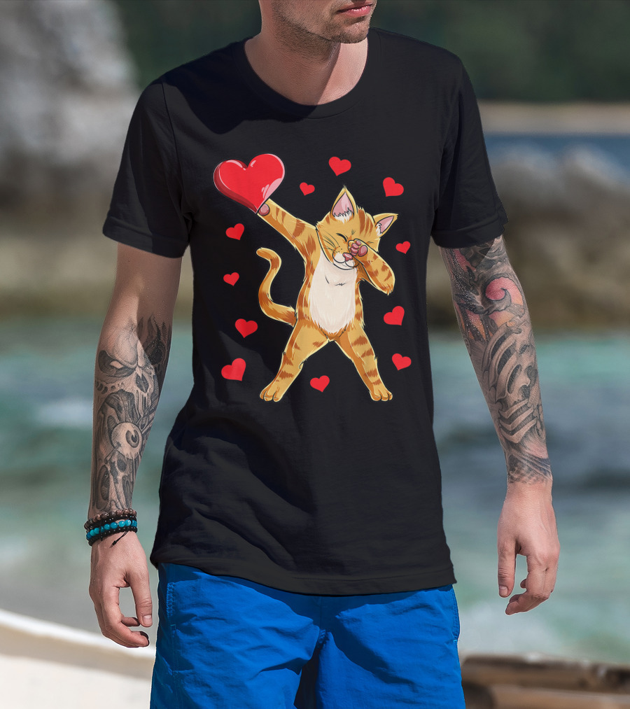 Dabbing Cat Heart Valentines Day Girls Kitten Lover 14 T-Shirt