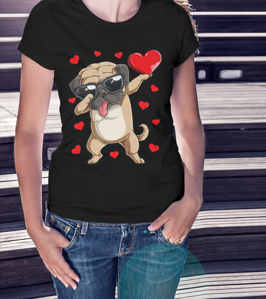The Valentines Day Dog Lover Heart Dabbing Pug Boys Love10 T-shirt is designed for everyday wear and a consistent fit. Fabric is pre-shrunk ring-spun cotton with durable stitching. See the size chart below for exact measurements.