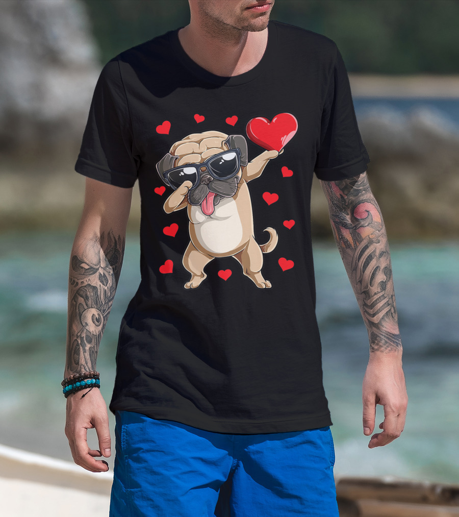 Valentines Day Dog Lover Heart Dabbing Pug Boys Love10 T-Shirt