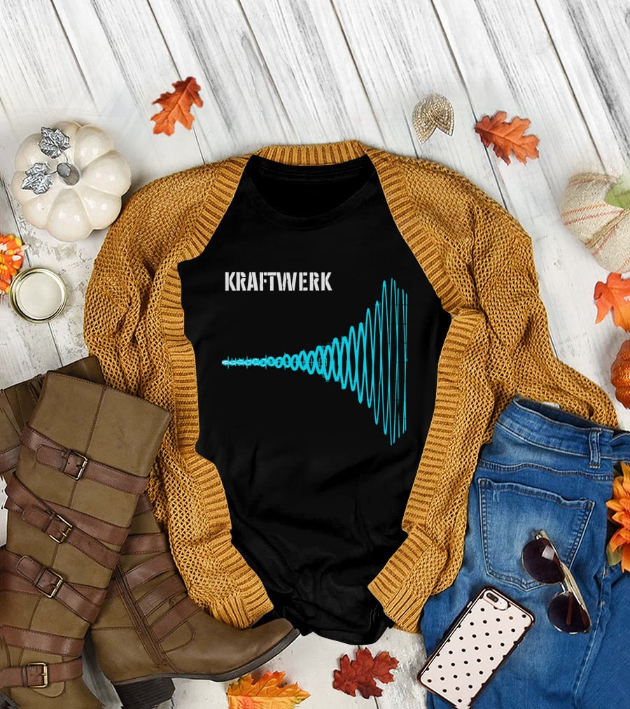 The Kraftwerk Blue Sound Waves T-shirt is designed for everyday wear and a consistent fit. Fabric is pre-shrunk ring-spun cotton with durable stitching. See the size chart below for exact measurements.