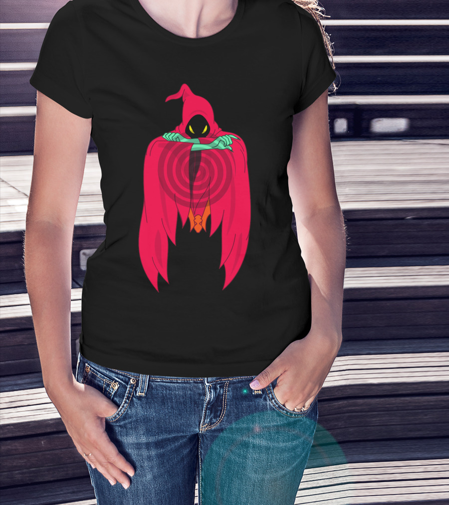 Shadow Weaver Enigmatic Hooded Phantom With Red Cape And Yellow Eyes T-Shirt