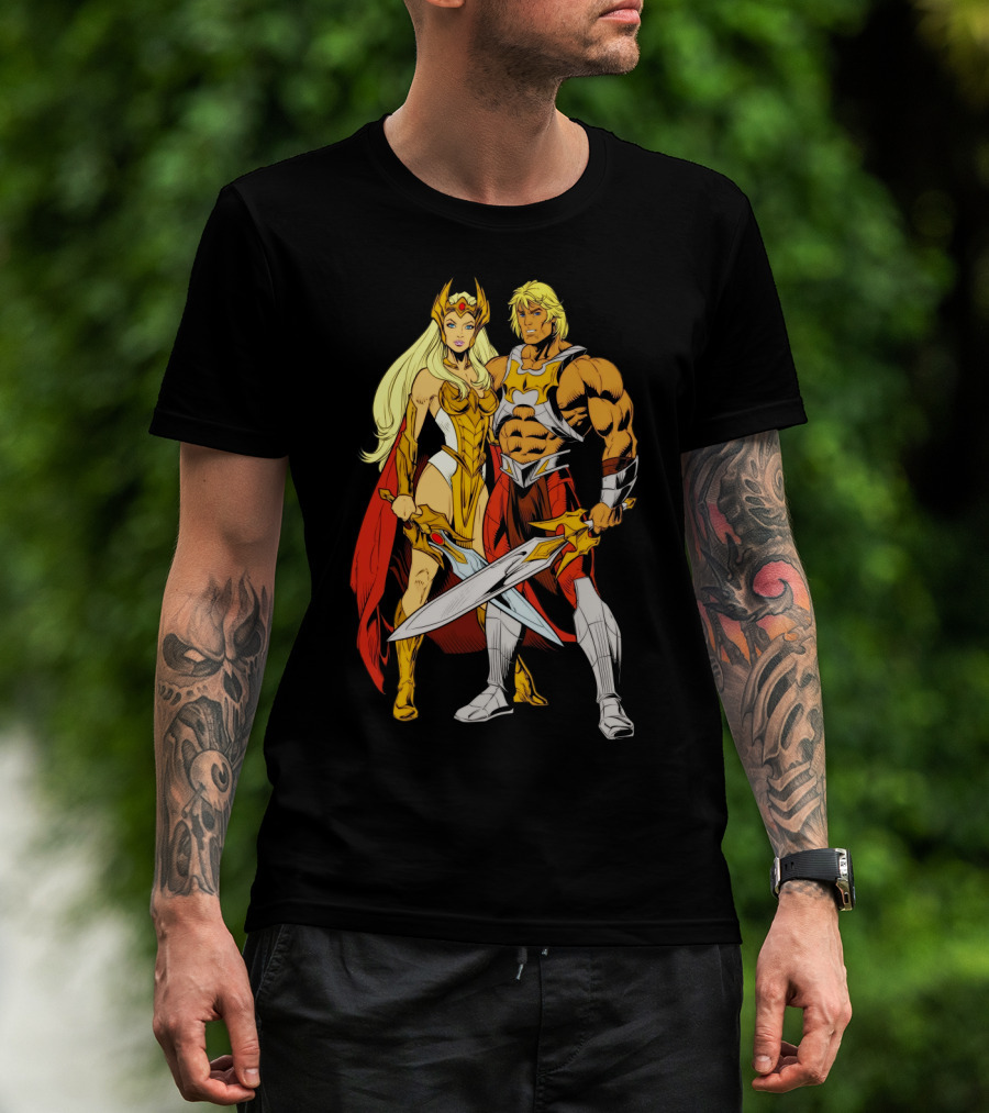 She-Ra And He-Man Classic Characters With Swords T-Shirt