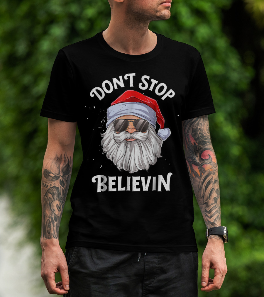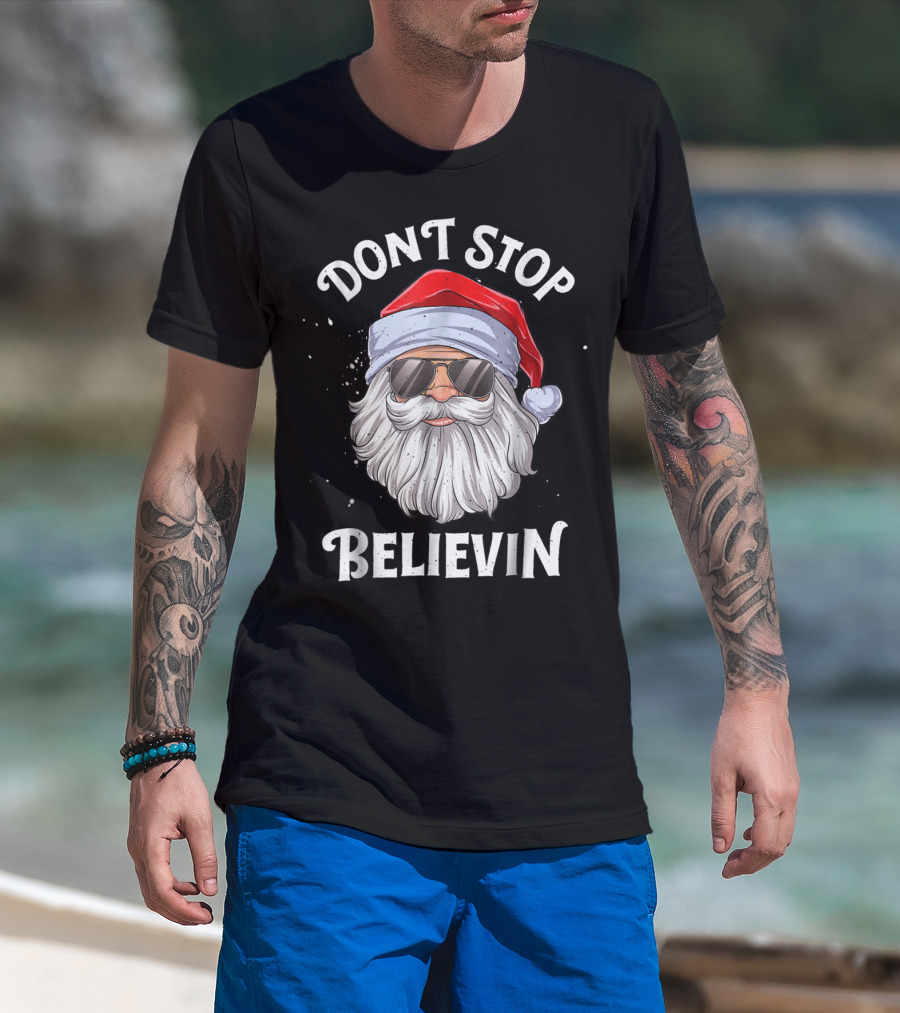 Dont Stop Believin Santa Christmas Boys Sunglasses Holiday T-Shirt