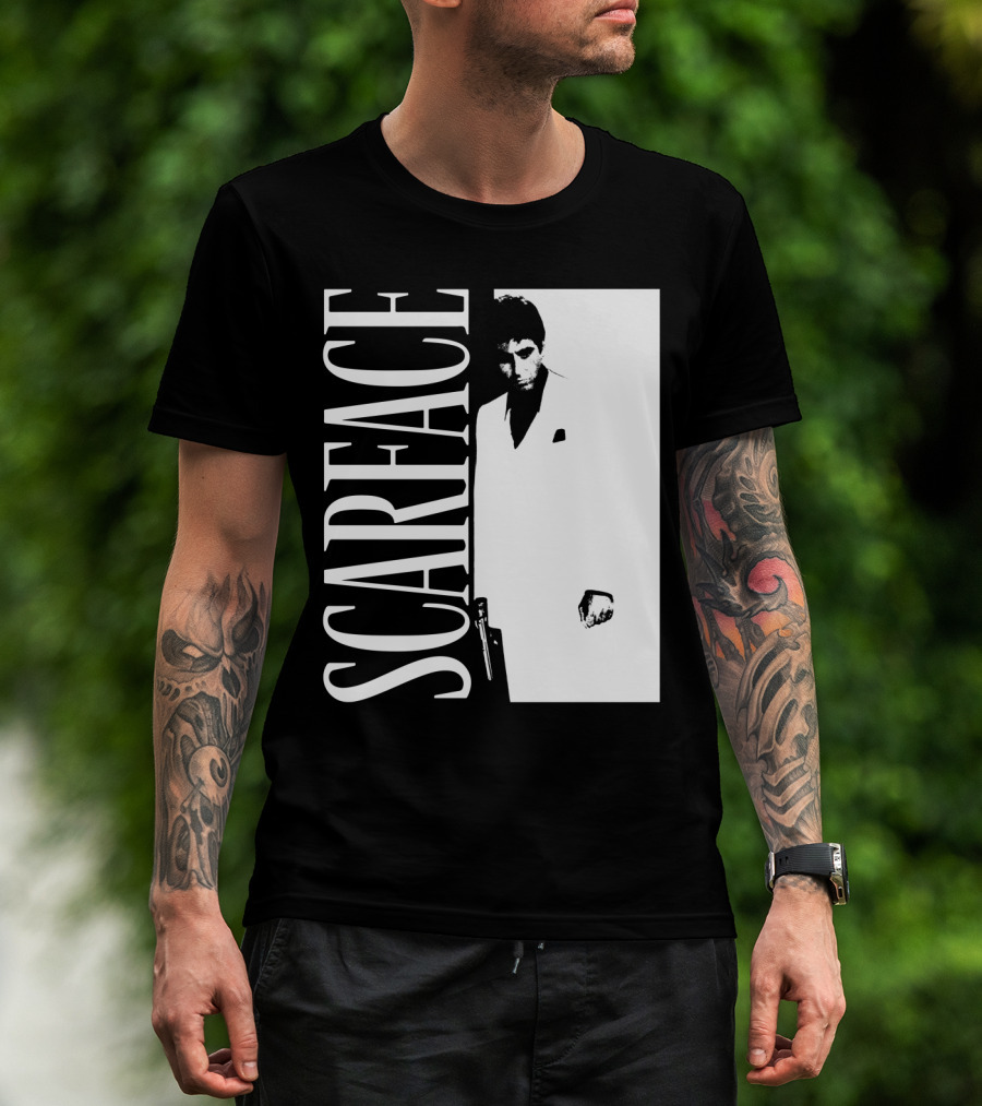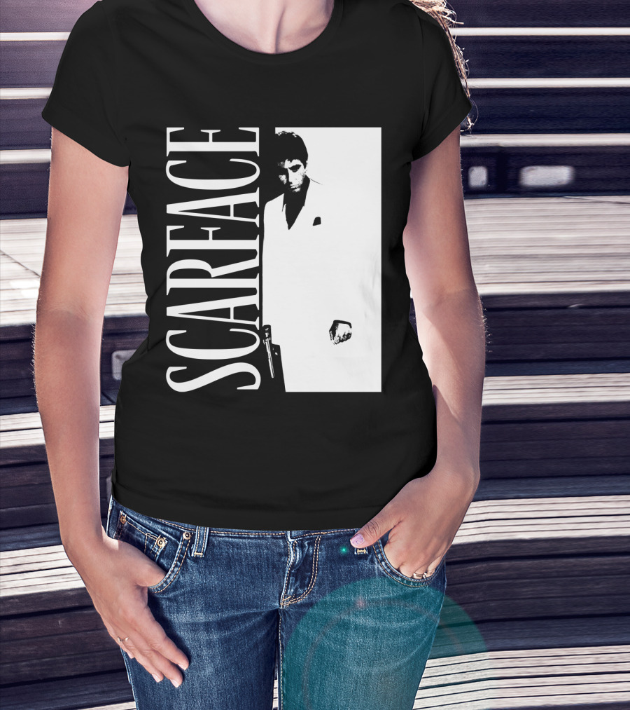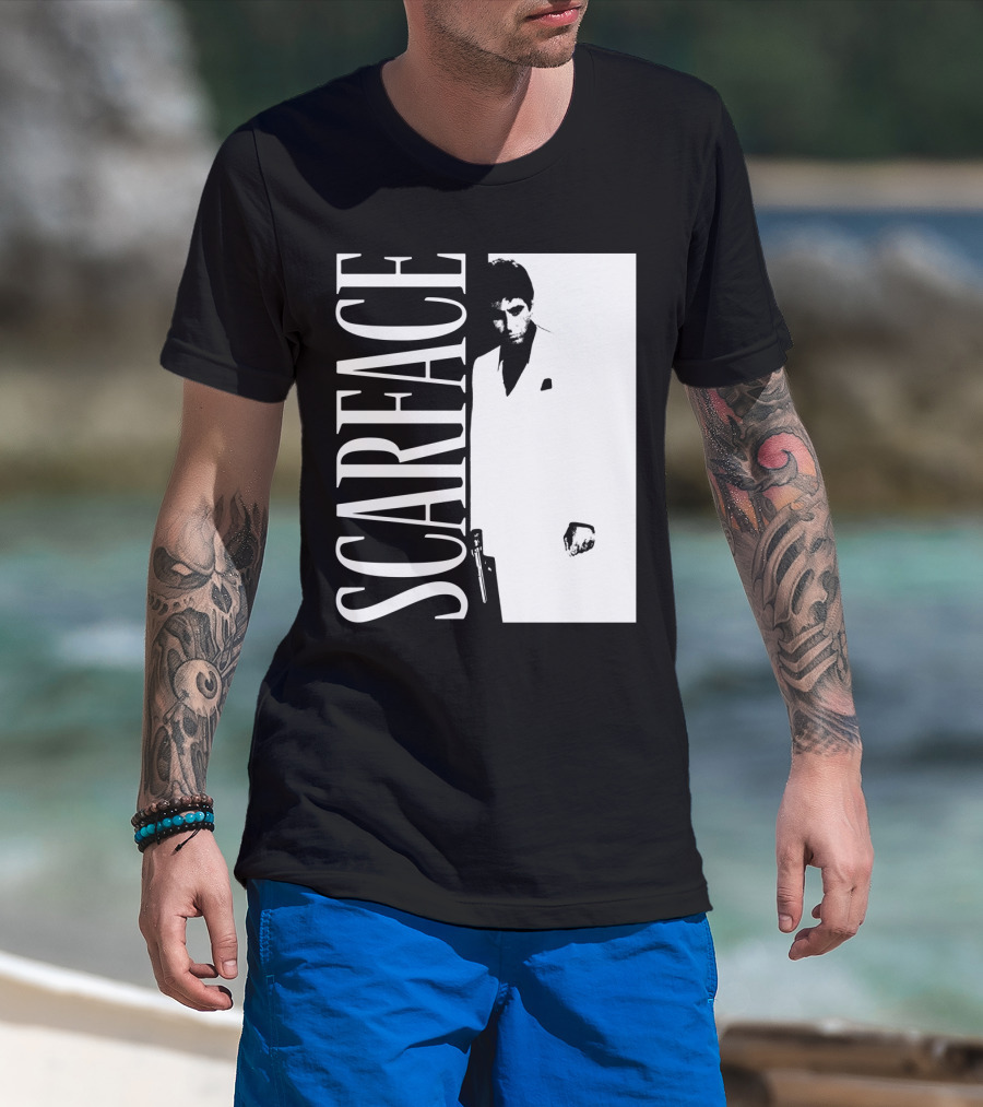 Scarface White Suit Black Background Iconic Movie Image T-Shirt