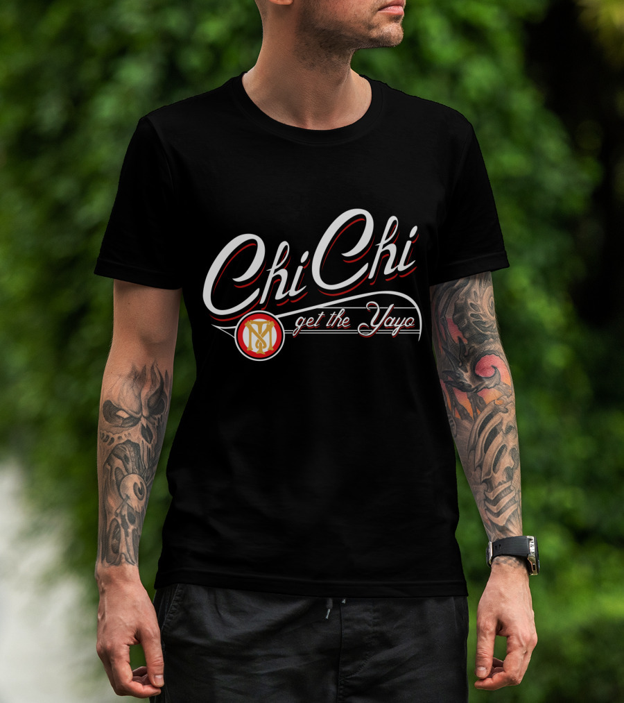 The Chi Chi Get the Yayo Scarface T-shirt is designed for everyday wear and a consistent fit. Fabric is pre-shrunk ring-spun cotton with durable stitching. See the size chart below for exact measurements.