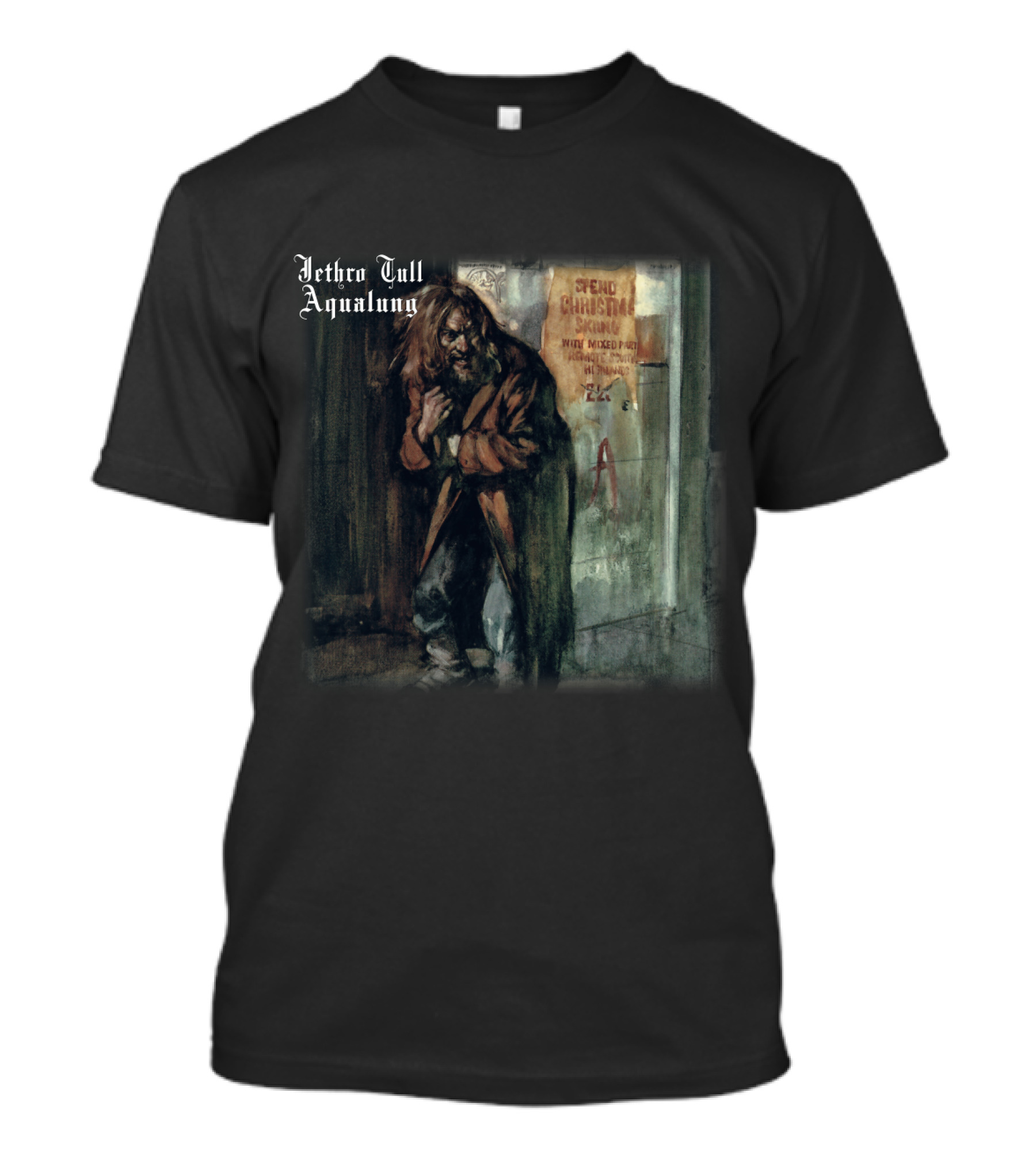 The Jethro Tull Aqualung 21 Rugged Homeless Man Painting T-shirt is designed for everyday wear and a consistent fit. Fabric is pre-shrunk ring-spun cotton with durable stitching. See the size chart below for exact measurements.