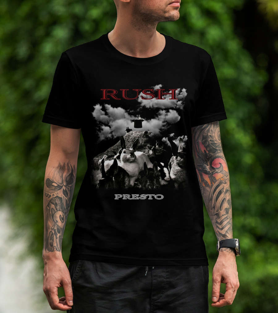 How much will this Rush Presto Album Cover with Rabbits and Top Hat on Hill shirt shrink?